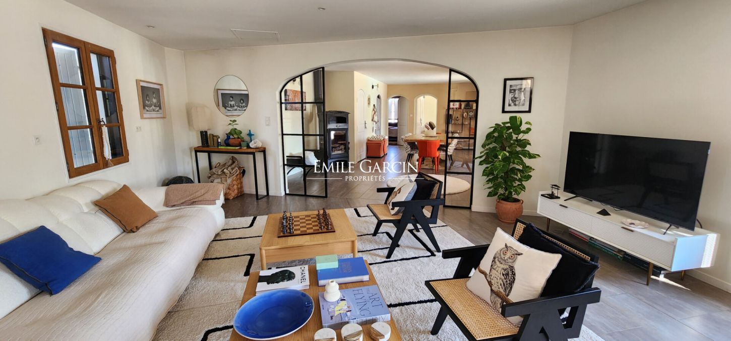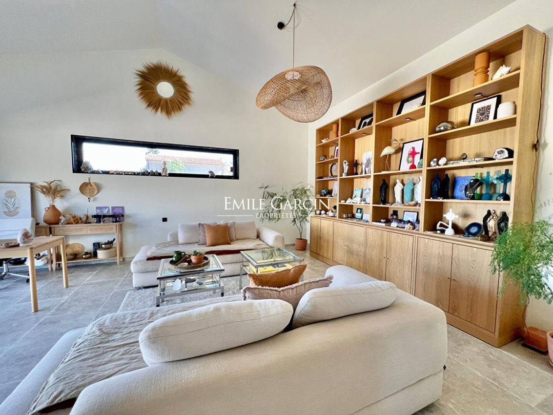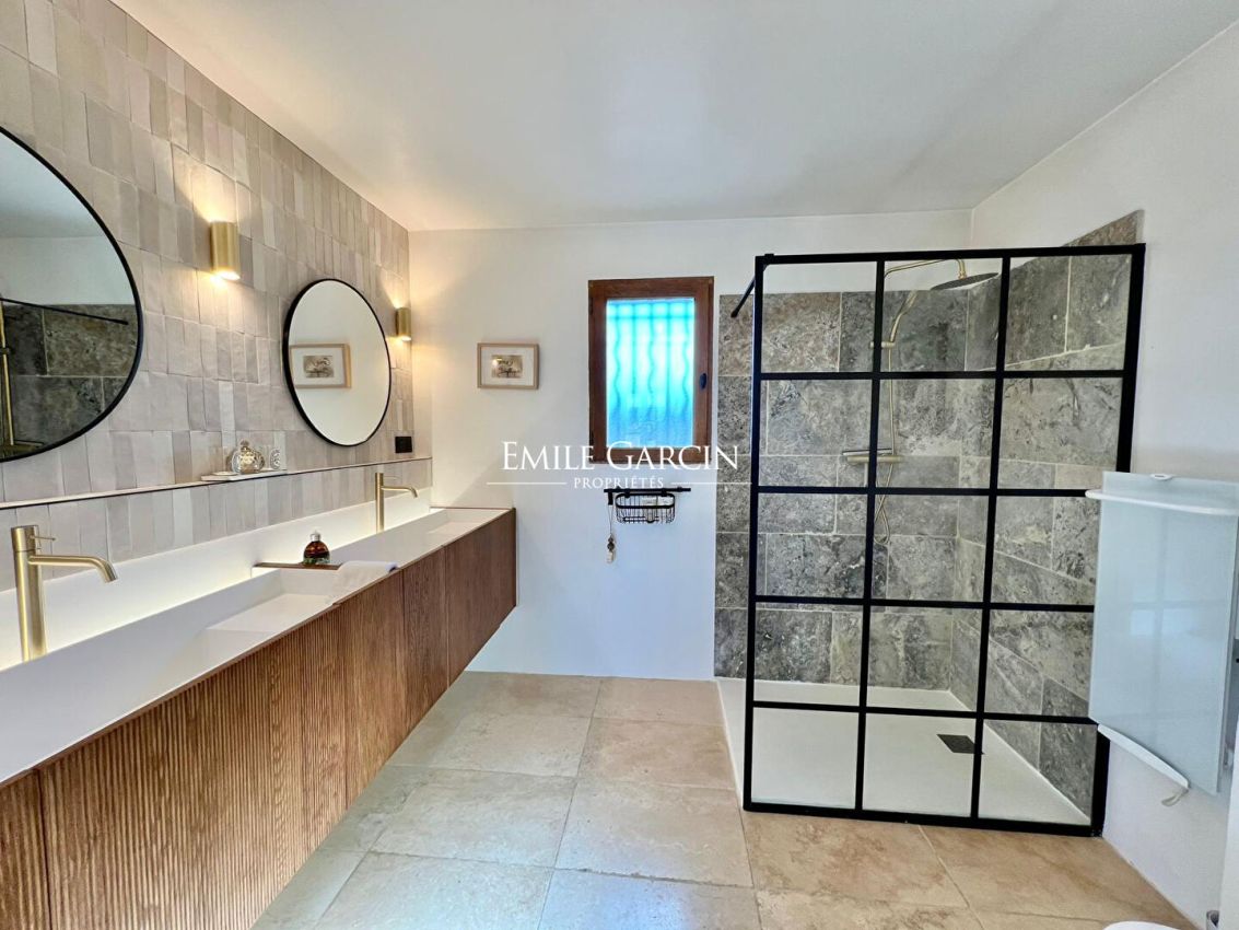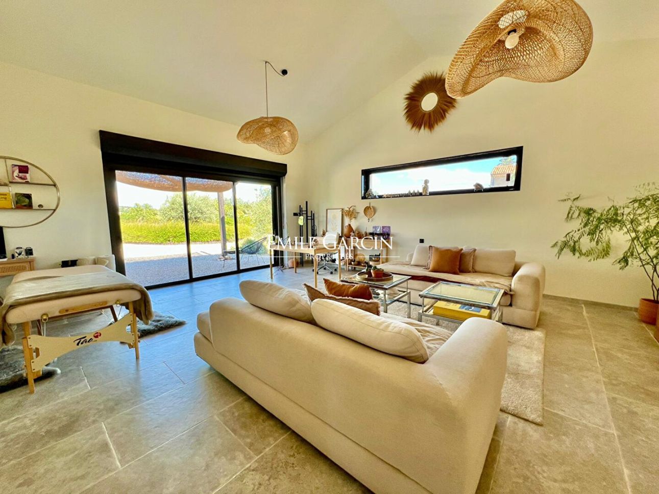 Au coeur de la Haute Provence, dans un village pittoresque et animé, cette propriété contemporaine de 264 m² s'élève au sein d'un terrain paysager de près de 3 000 m², offrant en plus un potentiel constructible rare. Conçue pour sublimer la lumière et les perspectives, la villa profite d'un très beau panorama sur la chapelle du village et les montagnes. Les espaces intérieurs, élégants et généreux, se composent d'un vaste séjour baigné de clarté, d'une salle dédiée au yoga et à la méditation, de quatre chambres avec dressings, de plusieurs salles de bains raffinées, d'une cuisine haut de gamme et d'une cave à vin pour les amateurs éclairés. Le choix des matériaux (sols art déco, verrière design, équipements sanitaires premium) illustre un goût affirmé pour l'alliance de l'esthétique et du confort. Le chauffage combine poêle à pellets, radiateurs Thermor et pierre de lave pour une atmosphère chaleureuse et moderne. A l'extérieur, un écrin de verdure parfaitement dessiné invite à la convivialité : four à pizzas, espace barbecue, coins ombragés et une somptueuse piscine au sel (4 x 9 m), le tout dans un environnement préservé et empreint de sérénité. Un bien rare où élégance, authenticité et art de vivre provençal s'unissent pour offrir un cadre de vie d'exception.