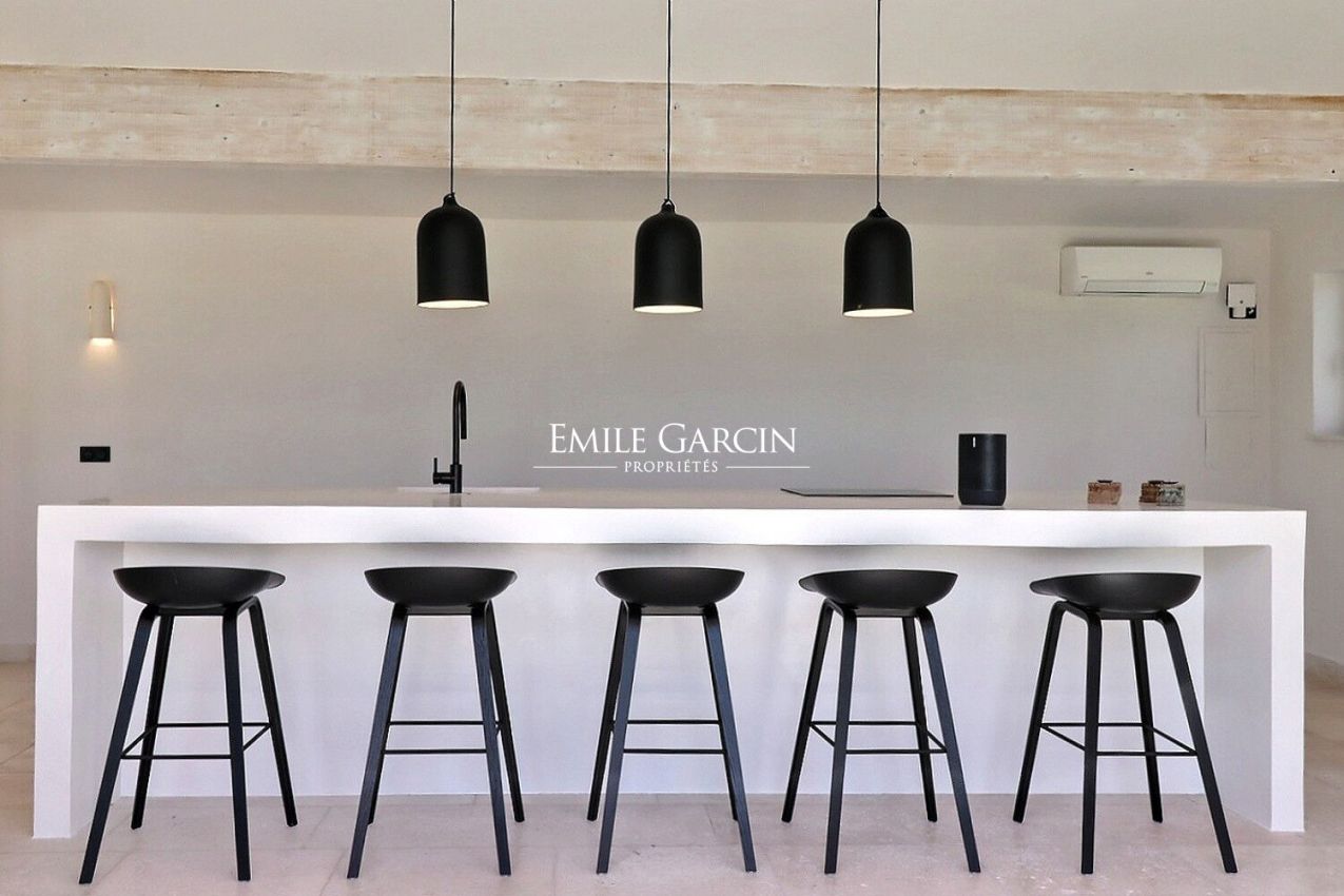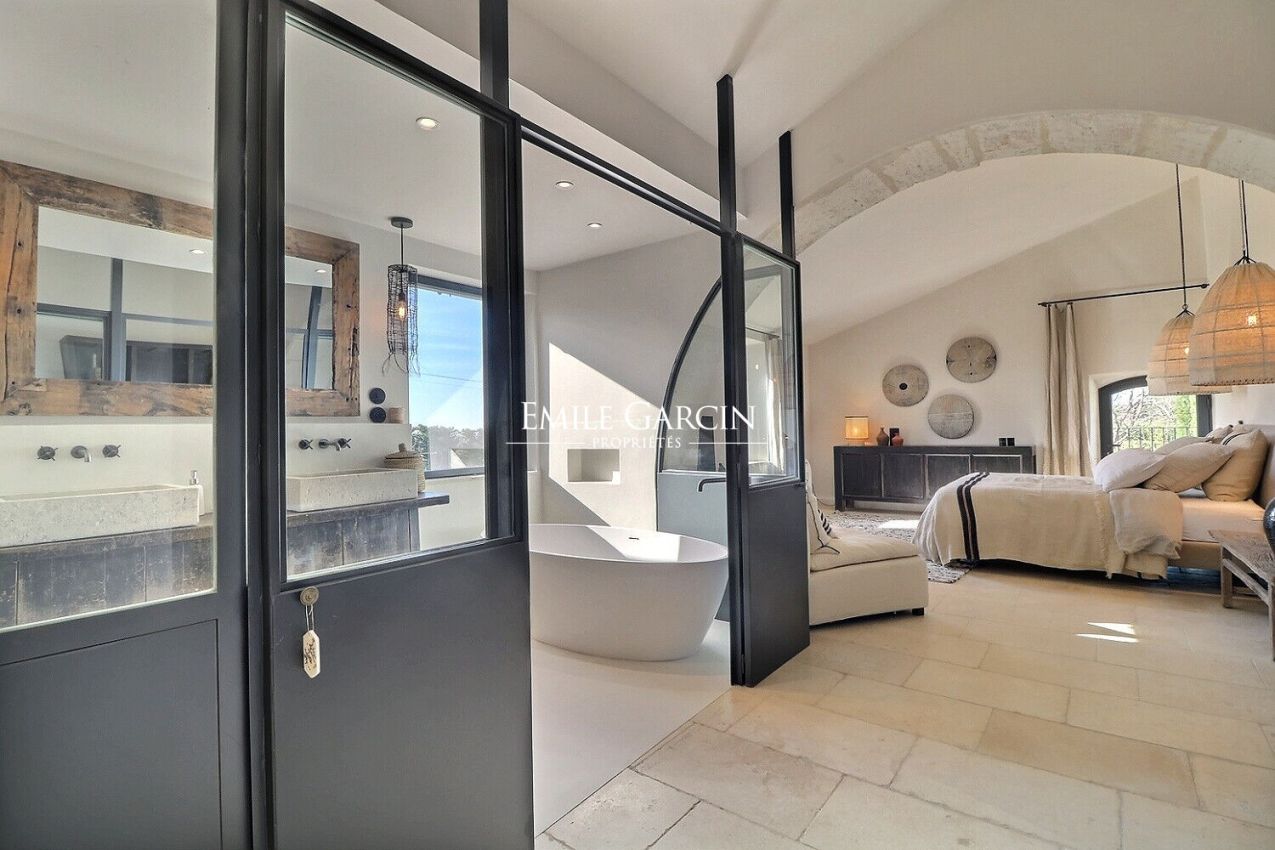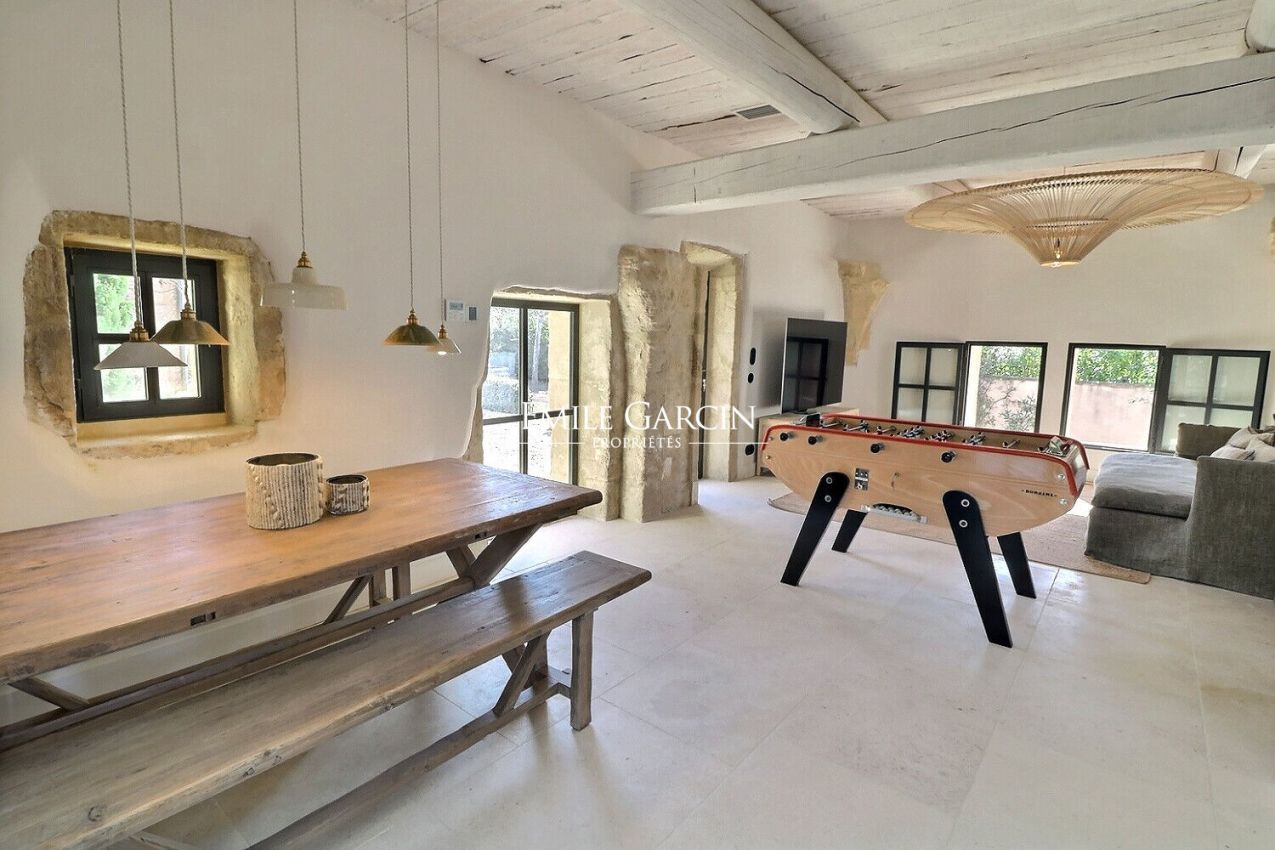 A seulement 2 minutes en voiture du centre du village de Maussane, ancien moulin de 400m² entièrement rénové avec des matériaux nobles et une décoration très soignée. Idéal pour des vacances en famille ou entre amis. Climatisation dans les chambres. Piscine chauffée de 11 x 5m. Poolhouse équipé. Plusieurs espaces de jeux : billard, ping-pong, baby-foot, terrain de pétanque.