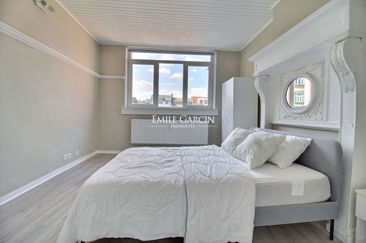 L'espace de vie est lumineux et comprend une belle cuisine ouverte bien équipée. Le bien dispose d'un PEB D. Provision de charges : 200 euros/mois (comprenant l'eau, le chauffage et les communs: nettoyage escalier, électricité des communs, extincteur, assurance abandon de recours et internet). Une opportunité à ne pas manquer. Disponible : 01/05/2026