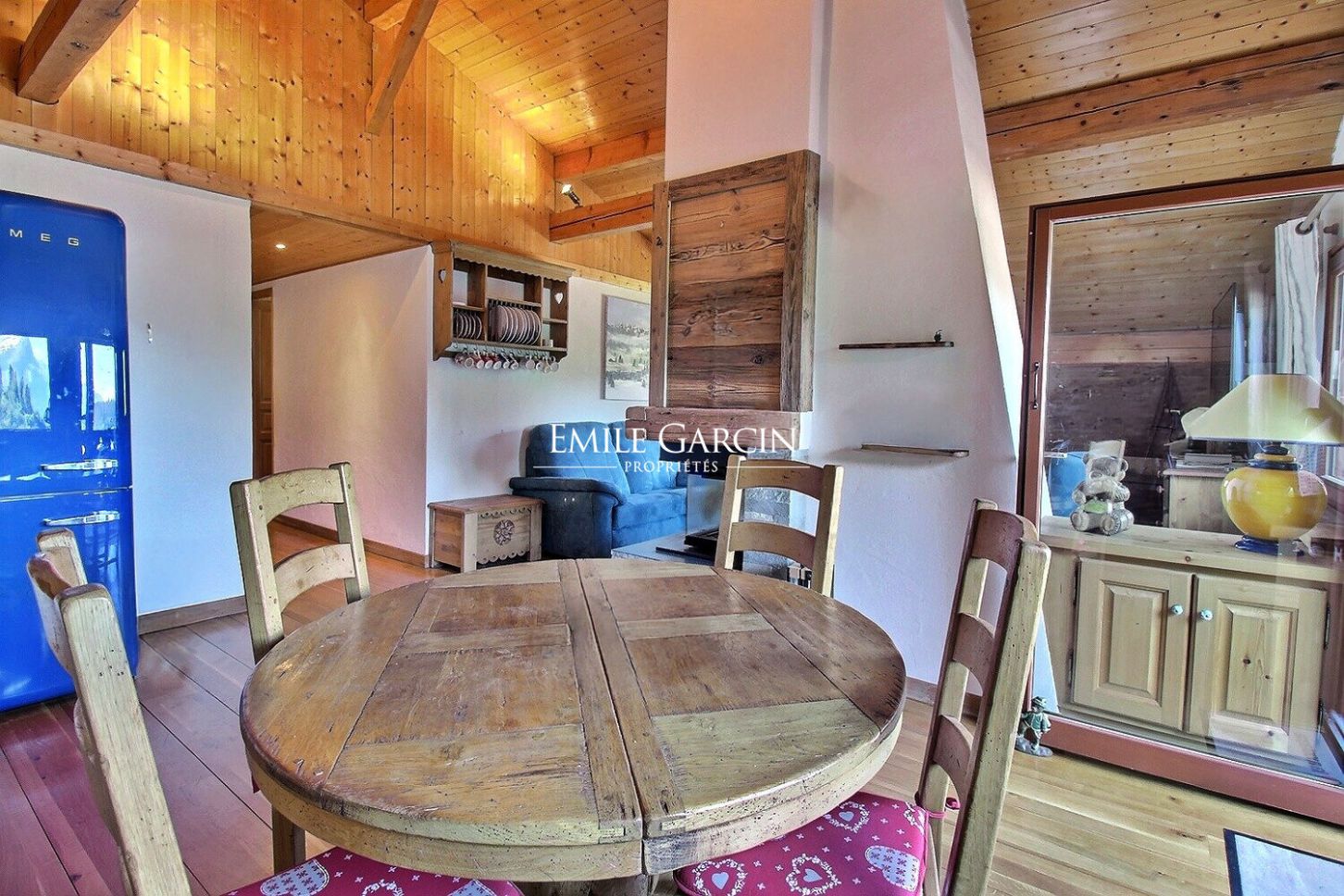 Il offre une belle ouverture sur les massifs environnants sans vis-à-vis. D'une surface de 73,9 m² loi Carrez et 82,8 m² total , il comprend un espace de vie spacieux avec cheminée et balcon, une cuisine ouverte entièrement équipée ainsi qu'un cellier, deux chambres, une salle de bain, une salle d'eau et deux toilettes. Le bien est vendu meublé.