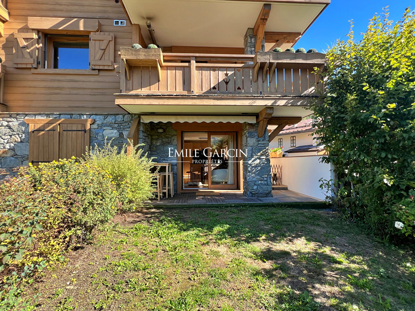 A Praz-sur-Arly (4 km de Megève), dans une très belle copropriété calme et entretenue avec soin, appartement en rez-de-jardin orienté plein sud, à proximité du centre du village et des pistes de ski.