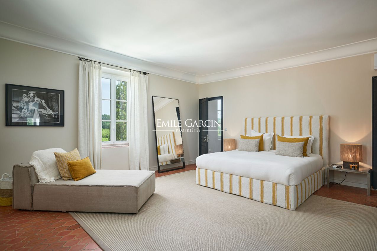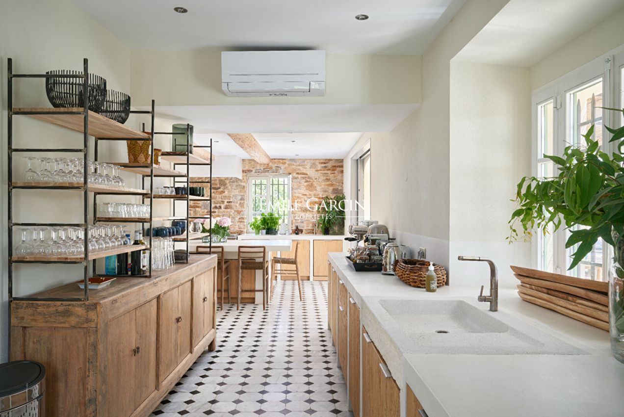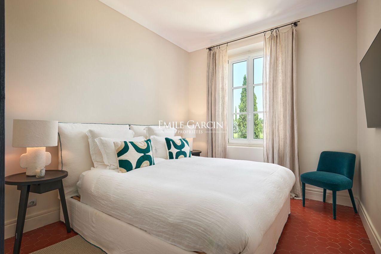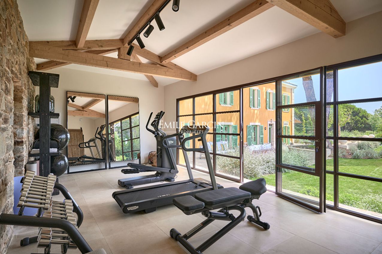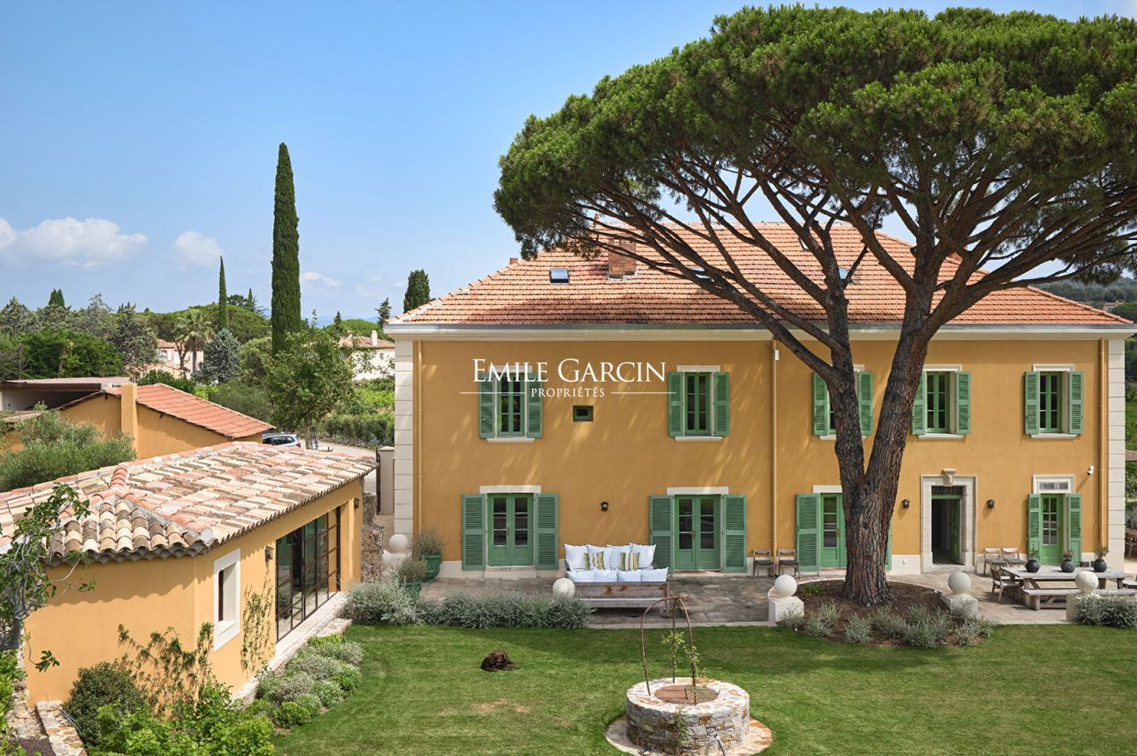 Idéalement située, à mi-chemin entre le centre de Saint-Tropez et les plages de Pampelonne, magnifique propriété de 700m² datant du 19ème siècle et entièrement rénovée . Grand jardin paysagé. 7 chambres, 5 salles de bains. Piscine. Terrasses aménagées. Terrain de pétanque. Salle de sport. Chef Cuisinier inclus Numéro d'enregistrement : 83101000645 GO