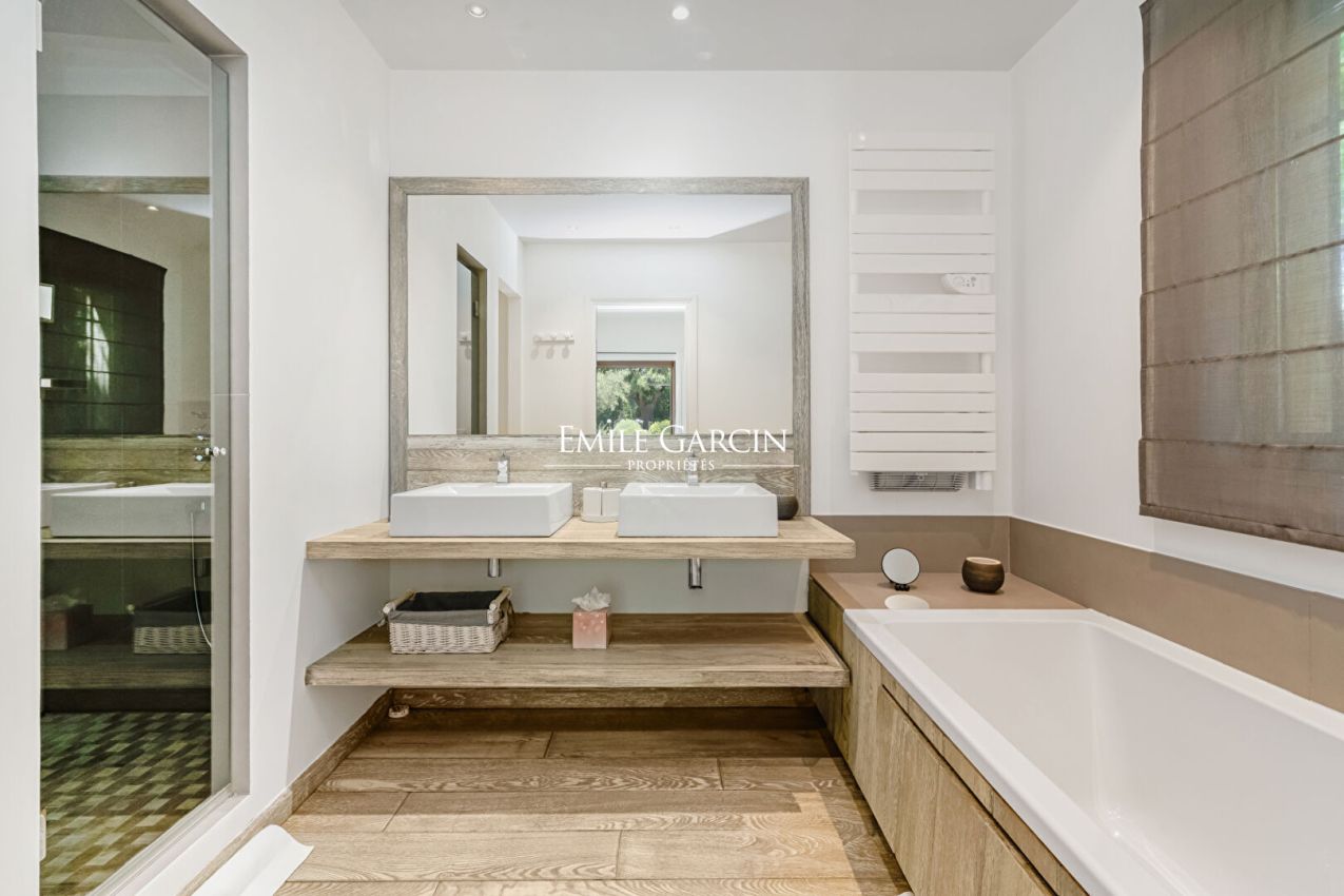 Dans un environnement calme et privilégié, mas de type provençal , entièrement rénové, de plain-pied avec piscine. Cette élégante bastide de 200 m² propose des prestations de qualité, à 300 mètres à pied de la plage de Pampelonne. 3 Chambres dans la maison principale + 2 chambres indépendantes avec un accès extérieur. Chacune possède sa propre salle de bains et est composée d'une terrasse privative ouverte sur le jardin. Piscine sécurisée . Terrain de pétanque.