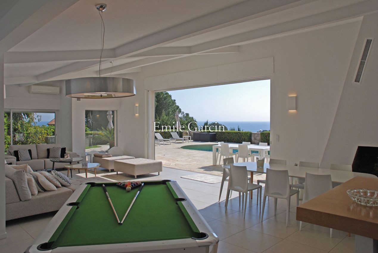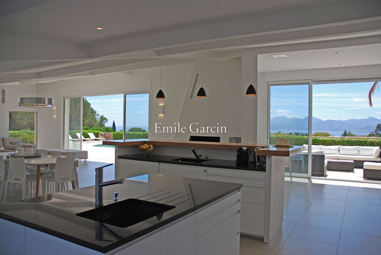 Maison moderne idéalement située sur la colline de la Croix des Gardes avec vue imprenable sur la mer, l'Esterel, orientée Ouest sans aucune nuisance. Ses volumes intérieurs style Loft lui donnent une identité et un confort rare. Répartie sur 2 niveaux. A moins de 10 minutes de la Croisette. La propriété comprend 6 chambres avec 6 salles de bains et de nombreuses places de parking. Piscine. Table de billard et de ping pong.