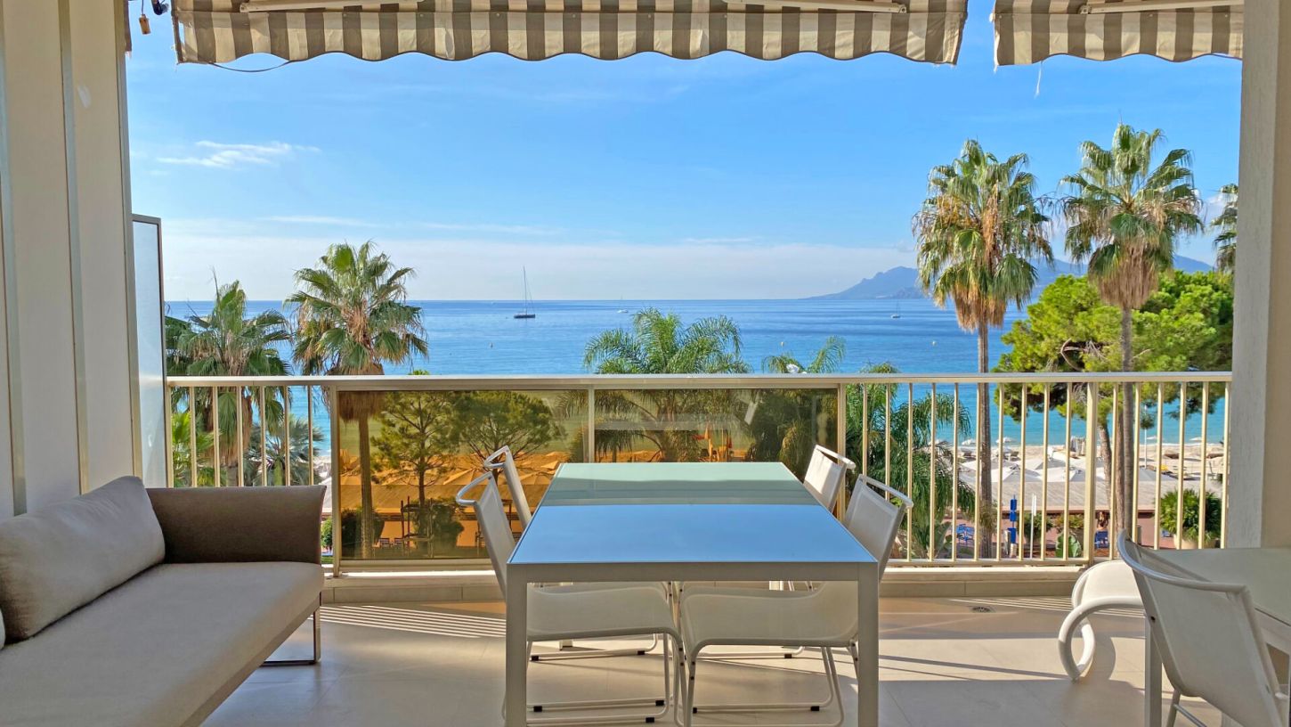 Superbe appartement situé en plein coeur de la Croisette et à moins de 10 minutes à pieds du Palais des Festivals. Vue mer à couper le souffle, grande terrasse de 25m2 avec transats, table d'extérieur et canapé. Les espaces sont spacieux et modernes. Grande chambre avec salle de douche et espace de travail. Pouvant accueillir jusqu'à 3 personnes confortablement. Place de parking inclus.