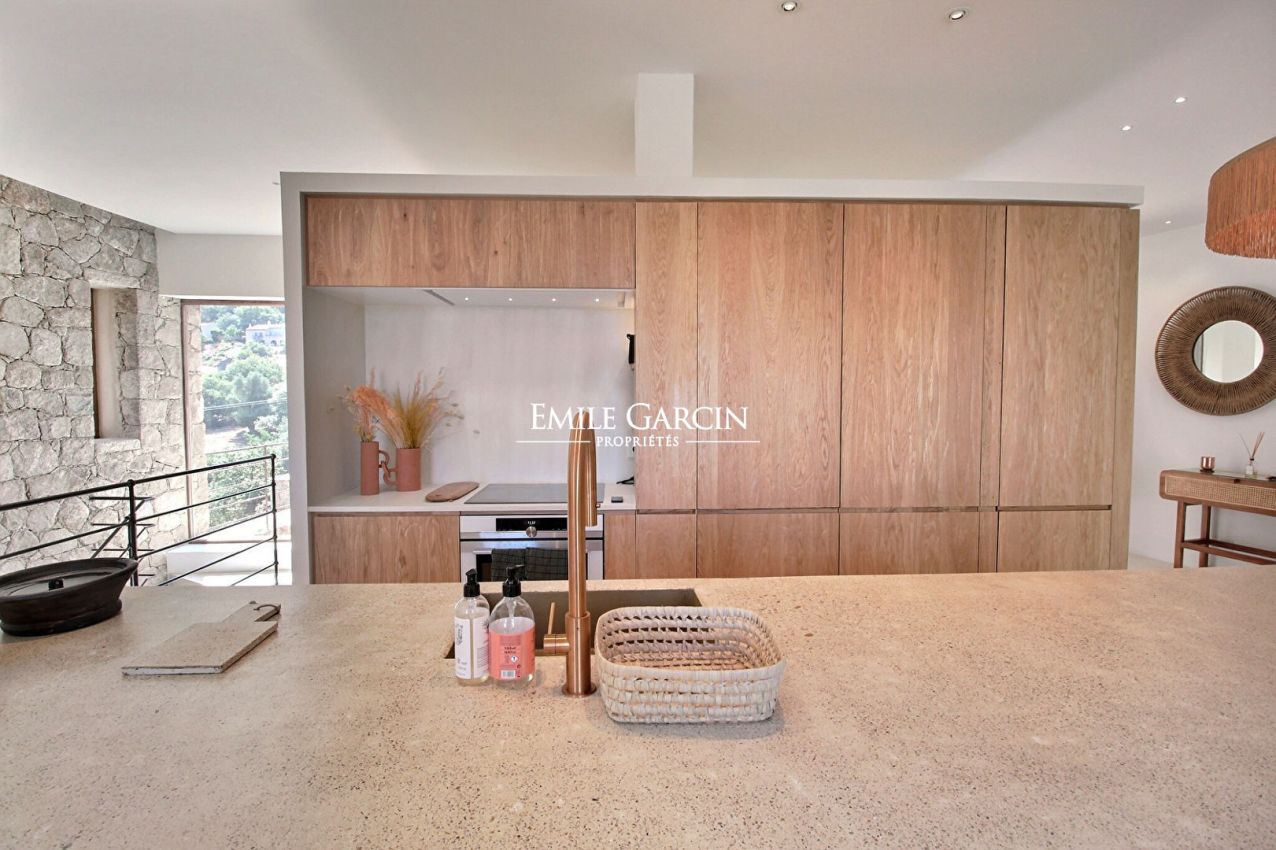 La piscine se trouve au milieu d'un très beau jardin arboré d'essences méditerranéennes avec vue mer et montagnes. Piscine de 4 x 3m. Les premières plages et les commerces se trouvent à 15 minutes.