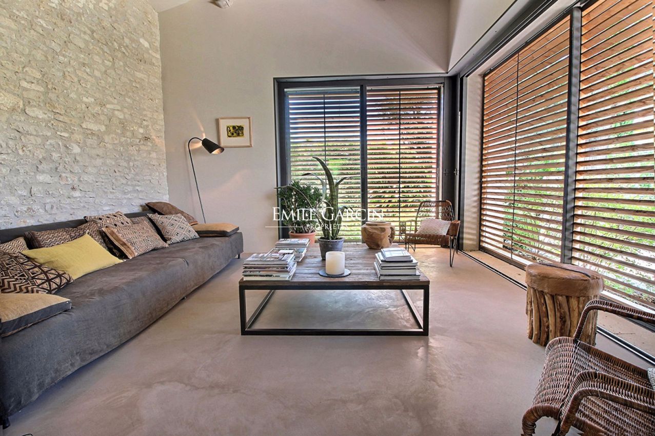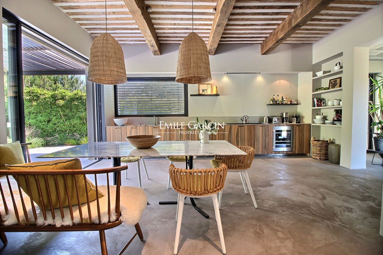 A Eygalières, à quelques minutes à pieds du centre du village, maison d'inspiration contemporaine, à la décoration moderne, offrant des prestations de qualités. Le rez-de-chaussée s'ouvre intégralement sur l'extérieur, permettant ainsi de profiter pleinement du jardin et de la piscine. Deux chambres dont une de maître se situent dans la maison principale, et la troisième dans le pool house, au fond du joli jardin. Piscine chauffée 15 x 4,5.