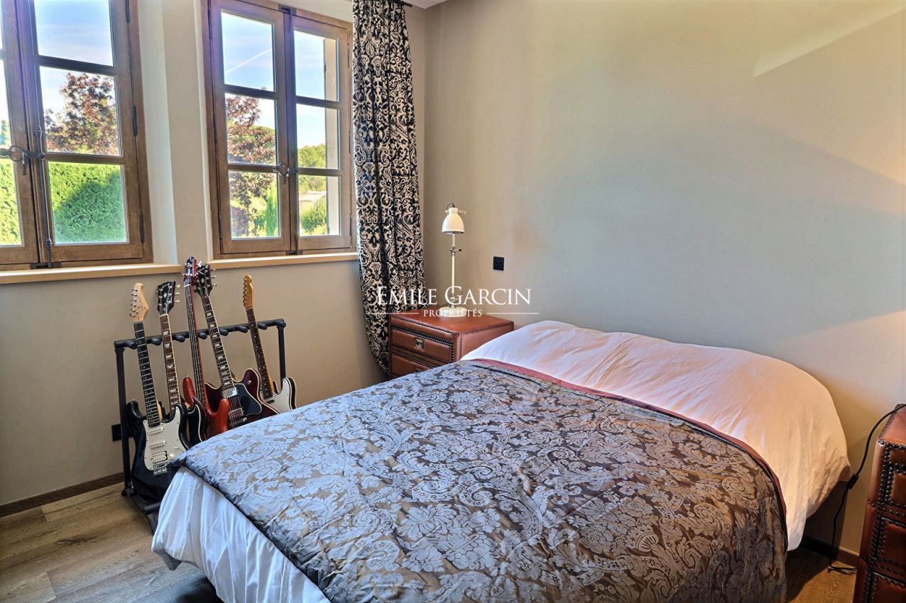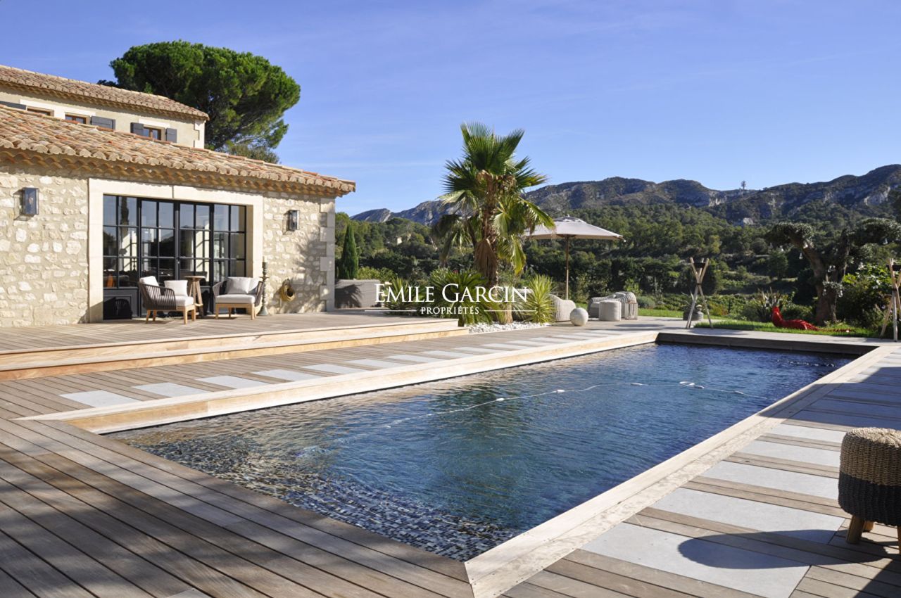 A St-Rémy de Provence, à quelques minutes du centre-ville, ce mas entièrement rénové offre 5 chambres, 5 sdb, tout le confort moderne, une vue spectaculaire sur les Alpilles. On y trouve de belles pièces de vie lumineuses et confortables. Le cadre est idéal pour une évasion dans les Alpilles entre amis ou en famille. Piscine chauffée, salle de sport entièrement équipée, salle de cinéma.