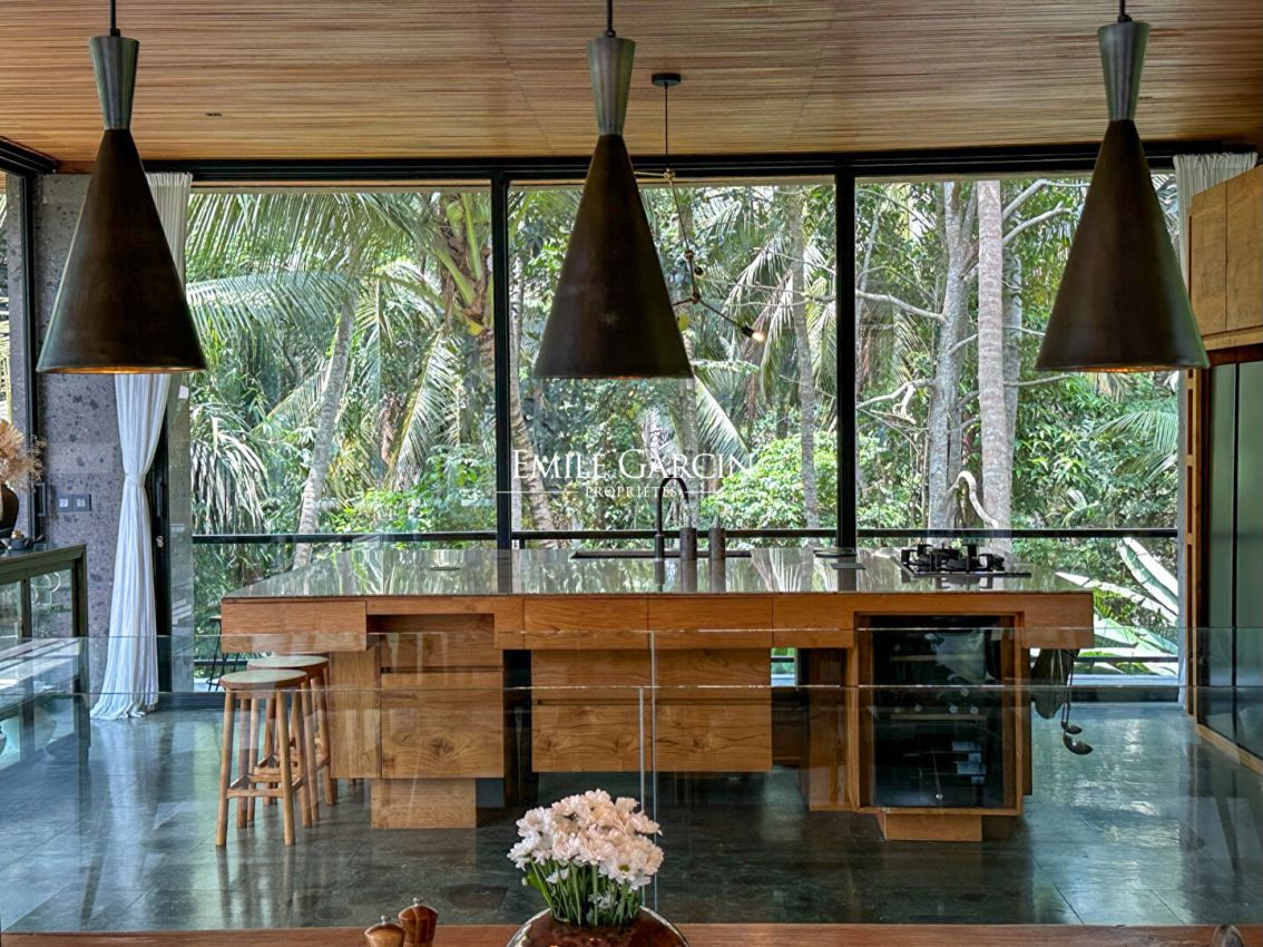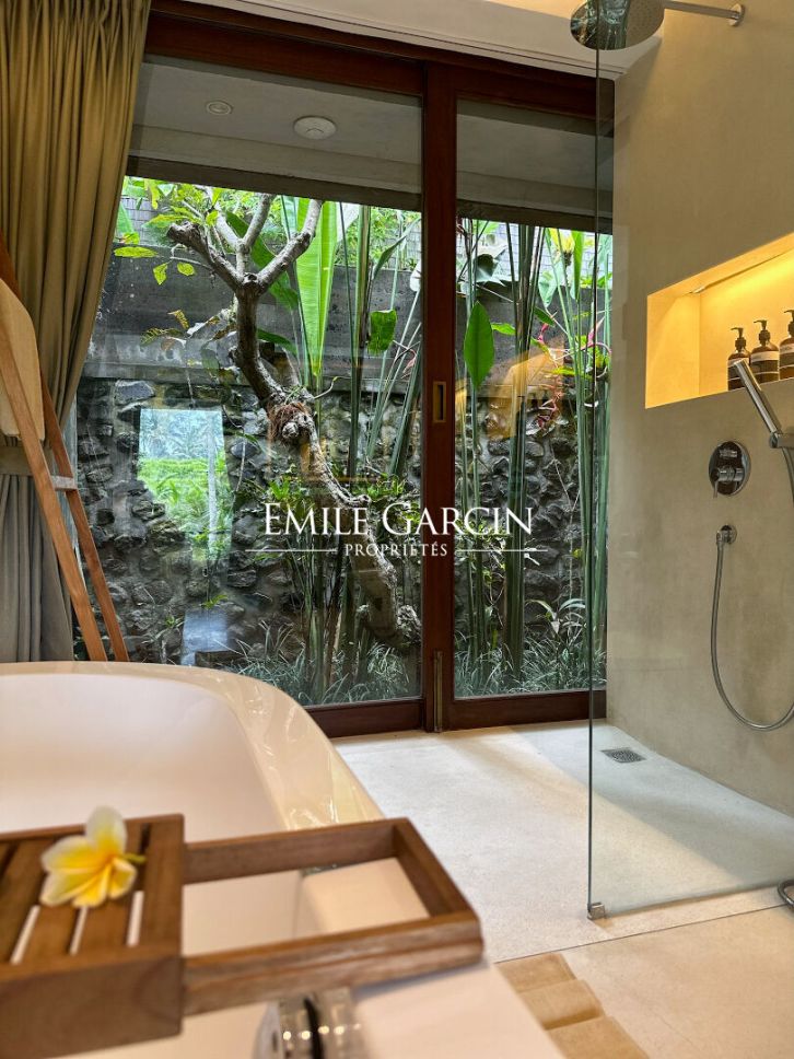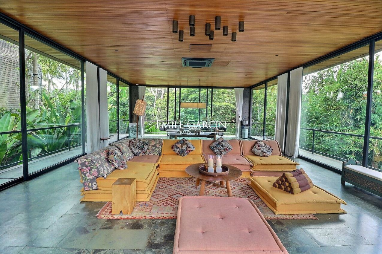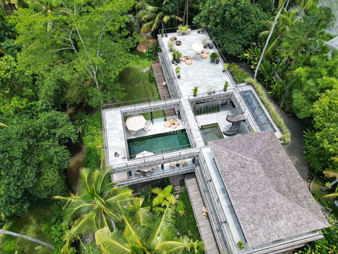 Nous vous proposons de vous plonger dans la jungle de Bali avec ce véritable sanctuaire de 5 chambres. Niché le long d'une rivière et entouré des rizières emblématiques de l'île, c'est un havre de paix et d'apaisement.