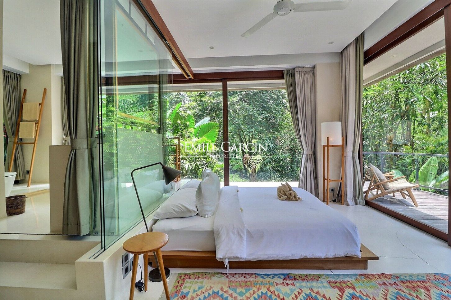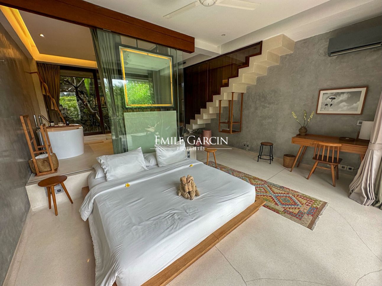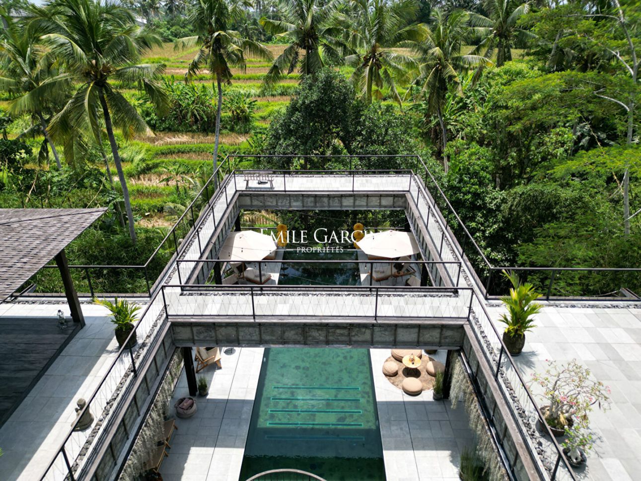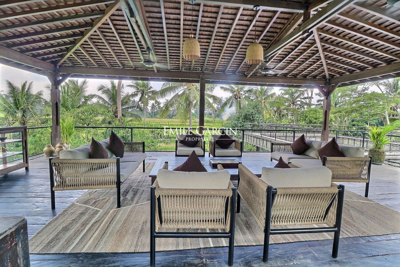 Nous vous proposons de vous plonger dans la jungle de Bali avec ce véritable sanctuaire de 5 chambres. Niché le long d'une rivière et entouré des rizières emblématiques de l'île, c'est un havre de paix et d'apaisement.