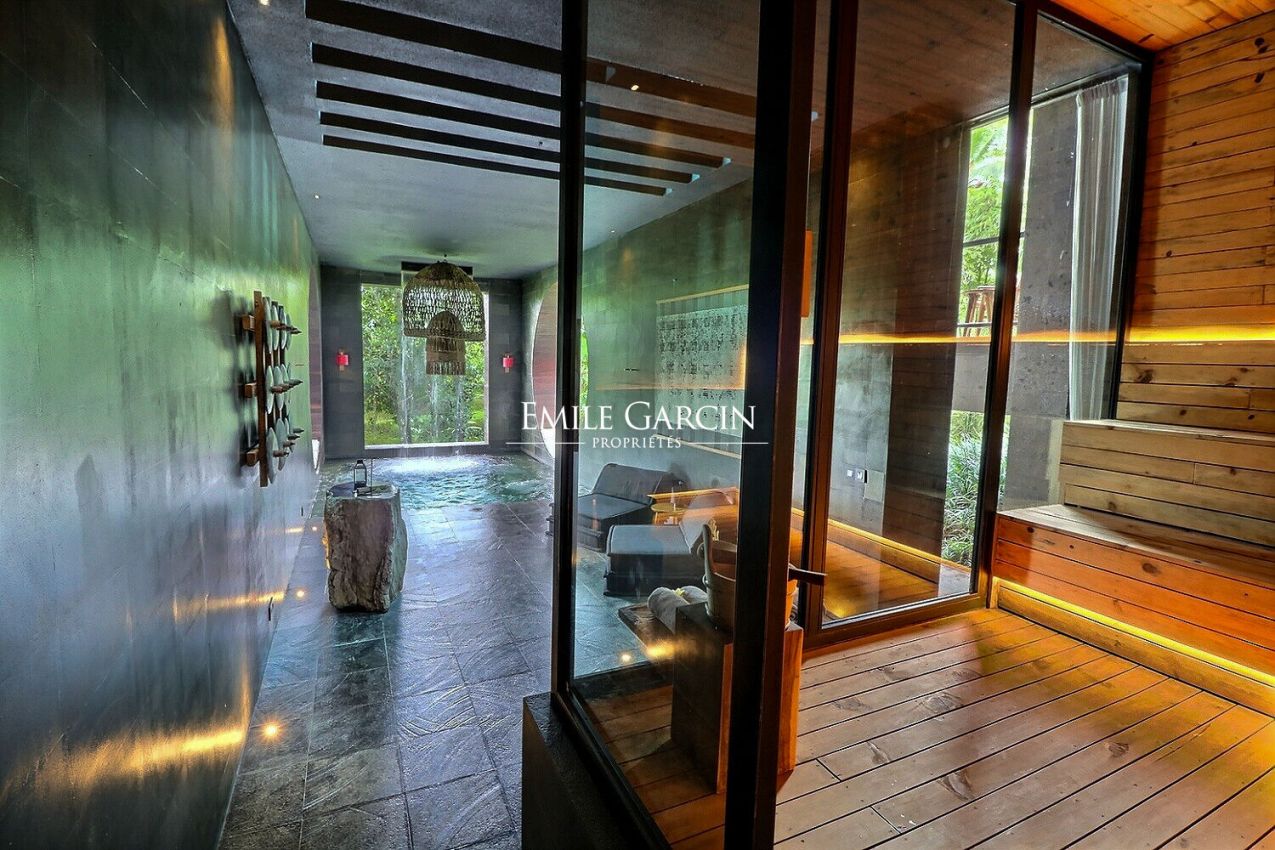 Doté d'une piscine à débordement de 16 mètres, perchée à 8 mètres de hauteur, d'un beau spa avec chute d'eau, d'un sauna, et de larges espaces extérieurs parfaits pour le yoga et la méditation, cette propriété est conçue pour inspirer et détendre.