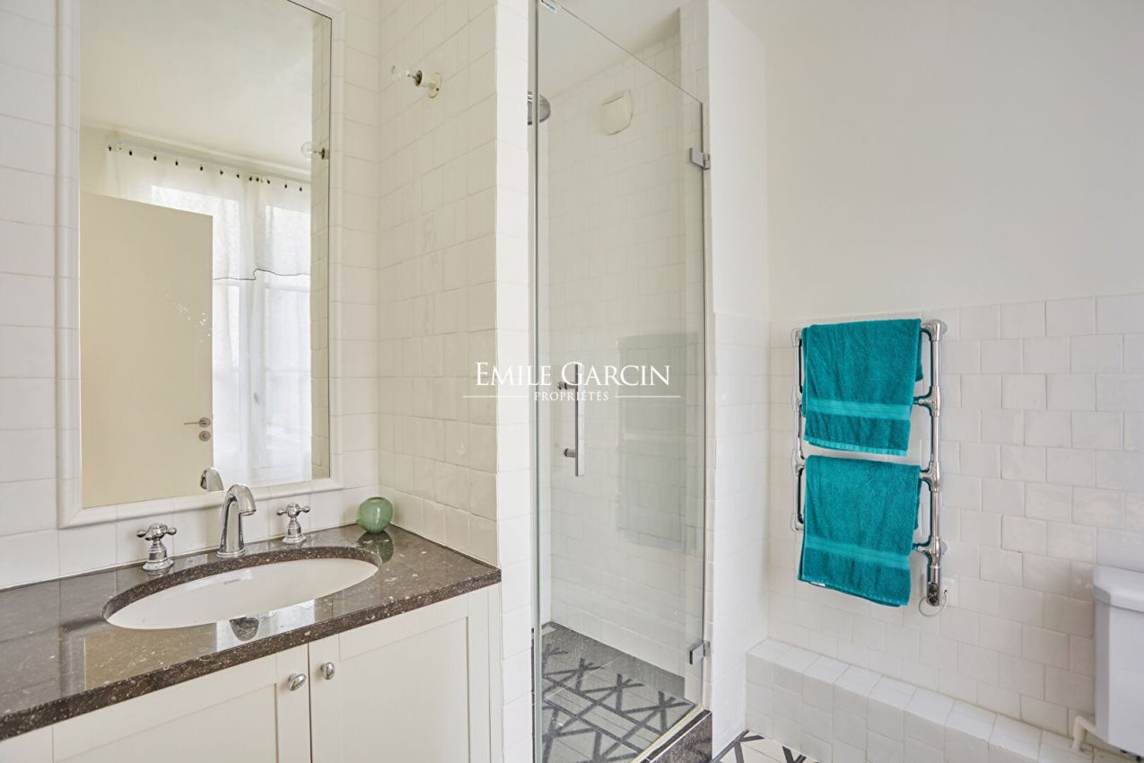 A l'étage : * Une suite parentale avec salle de bain comprenant baignoire, douche et WC * Une seconde chambre avec salle d'eau et WC * Une terrasse de 40 m² Au niveau inférieur (-1) : * Un espace dédié au sport * Une salle TV pouvant être aménagée en troisième chambre, avec salle d'eau attenante Bail code civil uniquement (logement de fonction ou résidence secondaire). Honoraires selon nos barèmes.