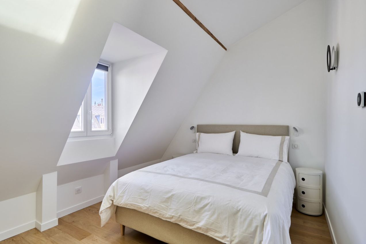 Au 6e et dernier étage d'un bel immeuble ancien, au sein d'une copropriété sécurisée et à l'abri des regards, très joli appartement meublé de 123m² (145m² au sol) totalement refait à neuf. Il se compose d'une entrée avec armoire, un joli séjour avec bibliothèque, une grande cuisine entièrement équipée (appareils éléctromenager haut-de-gamme) et coin de salle à manger, 3 chambres, deux salles d'eau dont une avec WC, une buanderie, des WC séparées. Calme absolu. Copropriété avec de nombreux gardiens.