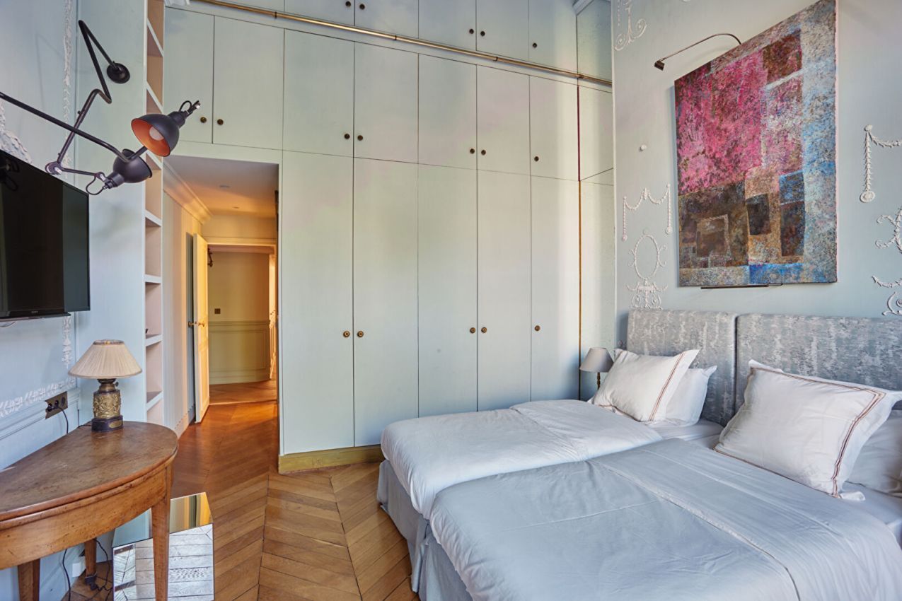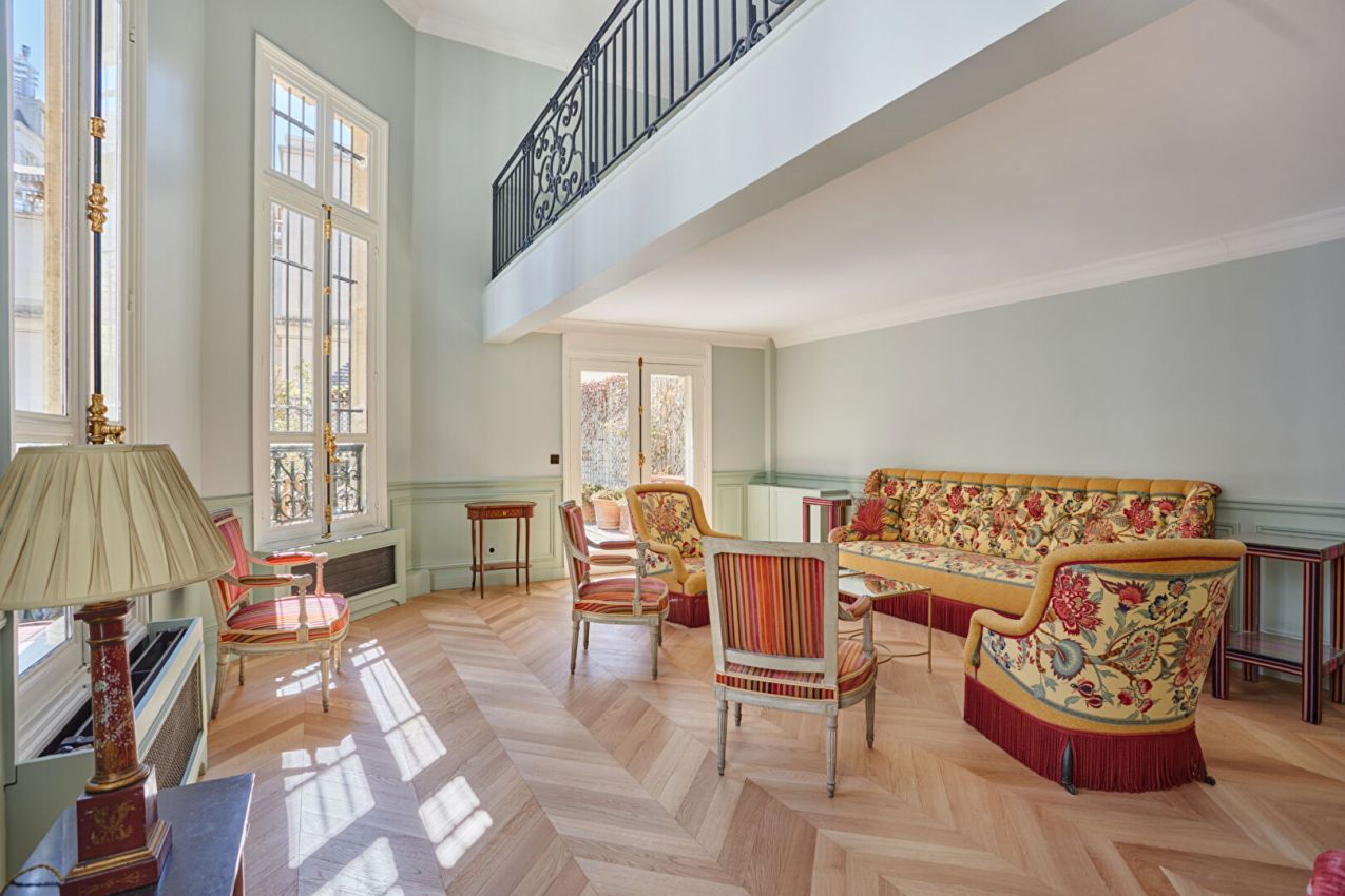 Situé dans une magnifique copropriété de la prestigieuse avenue Montaigne, cet appartement meublé de 260m² se compose d'une vaste entrée, d'un séjour, d'une salle à manger, d'une cuisine séparée aménagée et équipée, d'une chambre en mezzanine avec sa salle de douche et WC, de deux chambres dont l'une avec une salle de bain, l'autre avec une salle de douche, une grande suite parentale avec un dressing, une salle de bains et un deuxième séjour s'ouvrant sur une magnifique terrasse plein sud de 50m². et une buanderie avec kitchenette. Bail code civil uniquement (résidence secondaire ou bail société). Chauffage et eau chaude collectifs. Immeuble avec gardienne Climatisation . DPE: E Parking dans la cour LOYER MENSUEL: 17.000 euros charges incluses HONORAIRES SELON NOS BAREMES