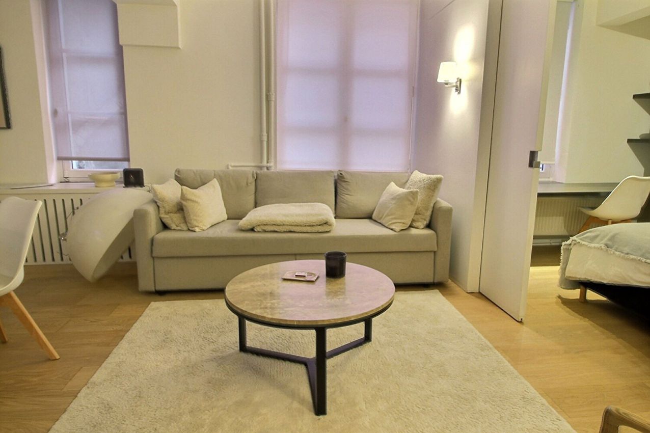 Location meublée - Paris 6 -1er/2ème étage sans ascenseur, un appartement de 45m². Parfaitement rénové, il se compose d'une entrée, d'un salon/ salle à manger avec cuisine américaine équipée, d'une chambre avec rangements, d'une salle de douche, des toilettes séparées. Parfait état. Calme.