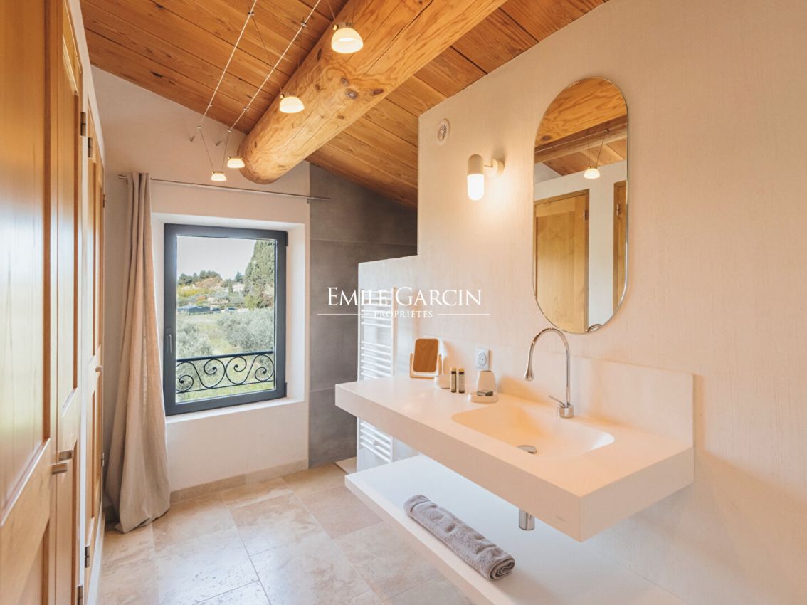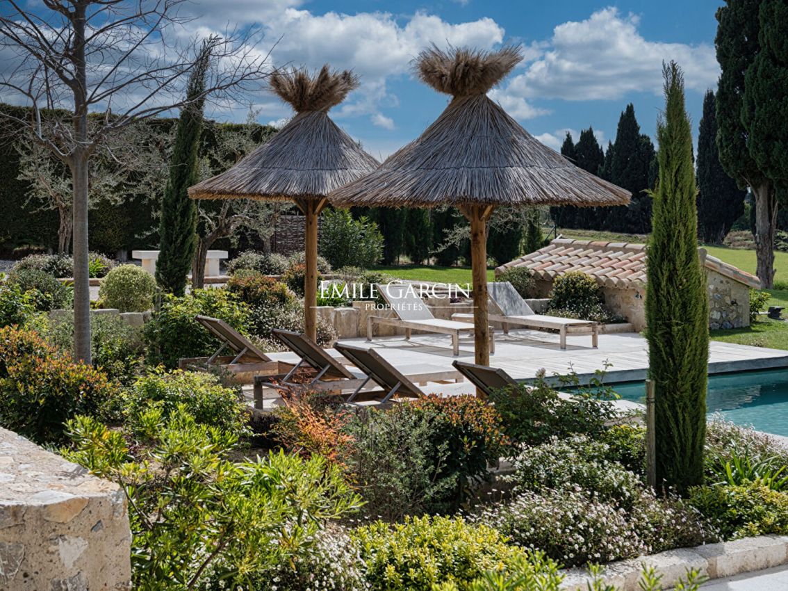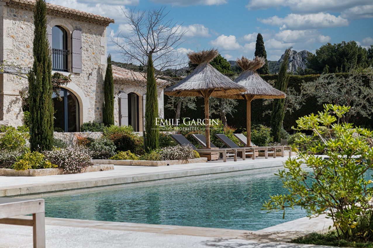 Au coeur des Alpilles - Magnifique maison de 290 m² offrant une vue totalement dégagée sur 3 hectares de prairie. La maison offre 5 chambres et 5 salles de bains, salle de sport, climatisation. Grande piscine de 16 m/ 5 m sécurisée par un volet électrique, poolhouse. Terrain de pétanque. Plusieurs espaces de détentes.