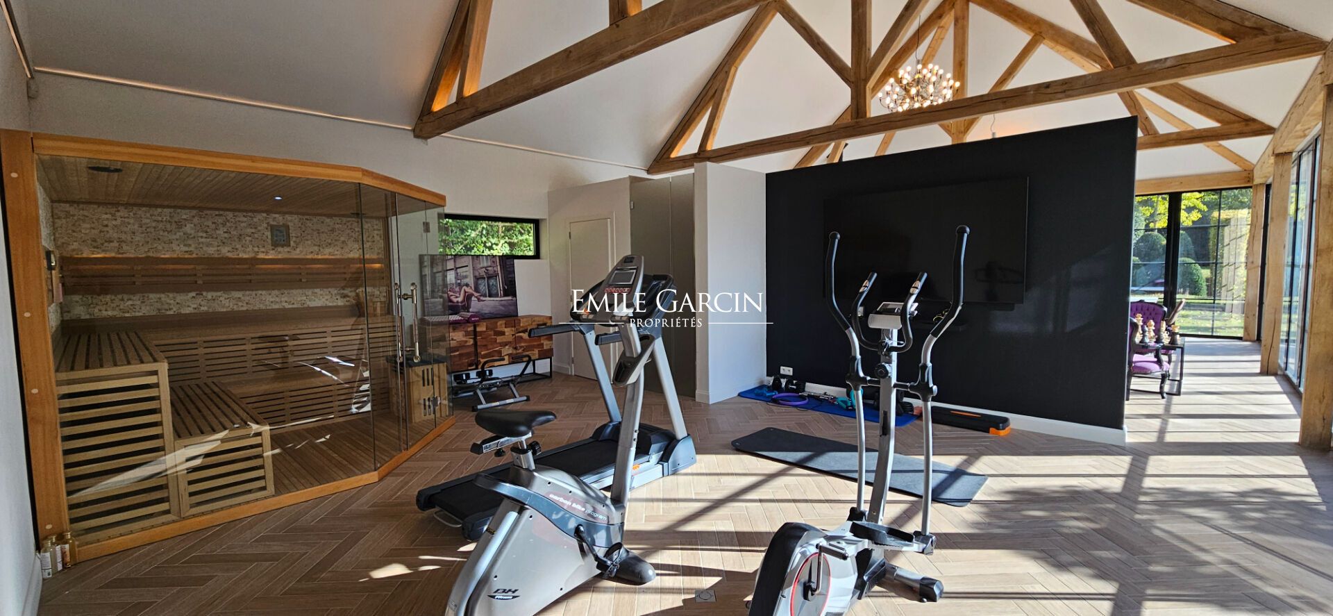 Un garage 3 voitures complète ce bel ensemble. Enfin, grâce à ses panneaux photovoltaïques (13 000kW) et sa borne de recharge électrique, la propriété conjugue luxe, confort et efficacité énergétique.