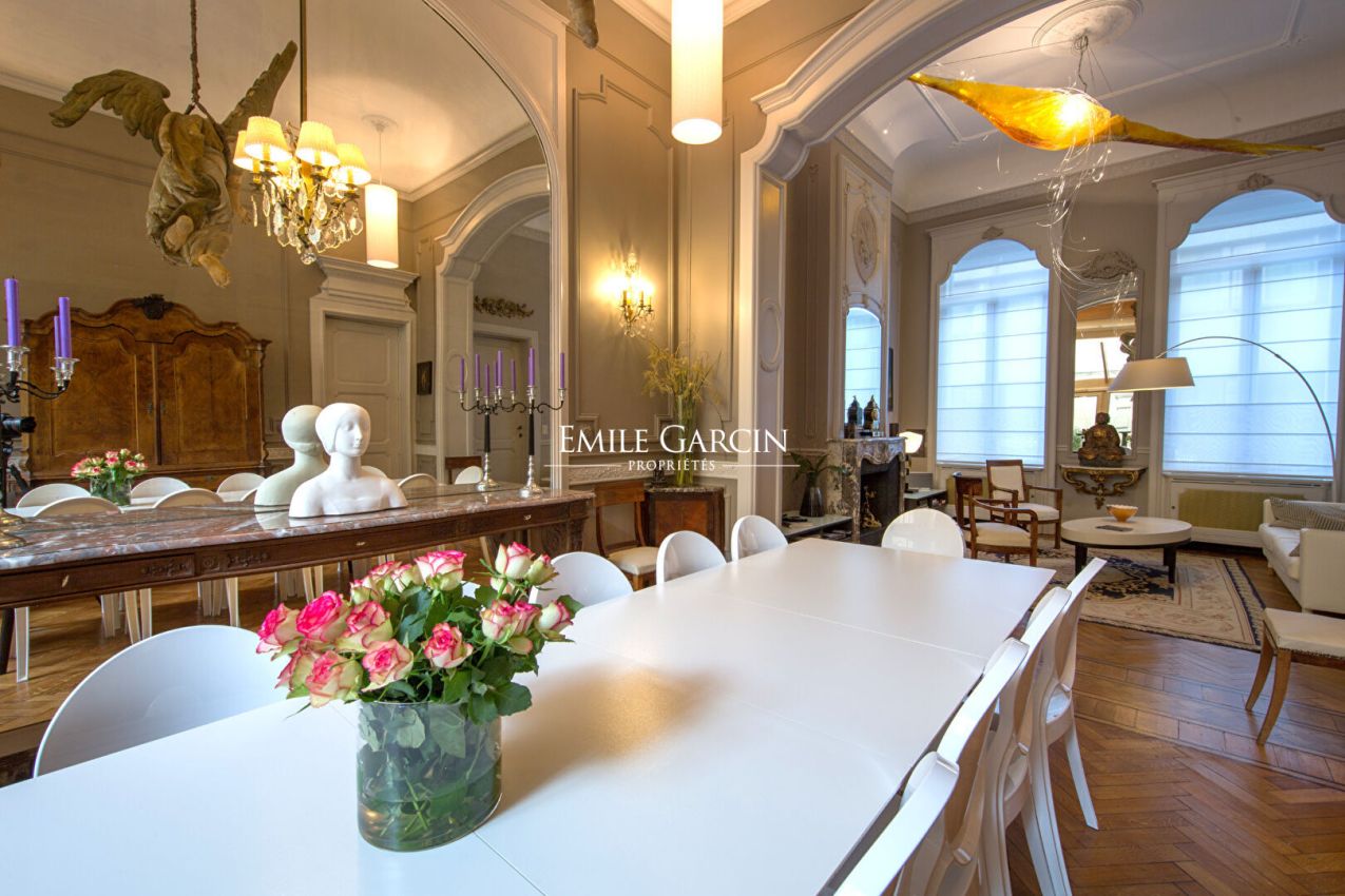 Propriété de charme rénovée à deux pas de la Place Stéphanie, située dans une rue calme et de l'avenue Louise, cette élégante maison bourgeoise d'environ 459 m² (selon PEB) séduit par sa rénovation soignée alliant caractère d'époque et confort contemporain. Restaurée avec goût, cette demeure de prestige, incarne à merveille l'art de vivre bruxellois : volumes généreux, hauteur sous plafond majestueuse, éléments décoratifs d'origine et atmosphère chaleureuse. Cette belle maison se compose au rez-de-chaussée d'un vaste hall d'entrée, avec un ascenseur, menant à de superbes pièces de réception en enfilade, composées d'un salon et d'une salle à manger lumineuse. Une verrière prolonge agréablement l'espace de vie et s'ouvre sur une cour paisible. Une cuisine entièrement équipée, à la fois élégante et fonctionnelle, complète ce niveau. Les étages, desservis par un ascenseur, offrent quatre suites spacieuses, possibilités de six chambres, chacune disposant de sa salle de bains privative. Chaque chambre possède une identité propre, mariant subtilement design, confort et matériaux de qualité. Le niveau inférieur comprend une pièce polyvalente (atelier, salle de sport ou chambre d'appoint possible) ainsi que plusieurs caves de rangement. L'âme du lieu a été préservée à travers une restauration respectueuse et audacieuse : belles boiseries, miroirs monumentaux et oeuvres d'art dialoguent harmonieusement. PEB D