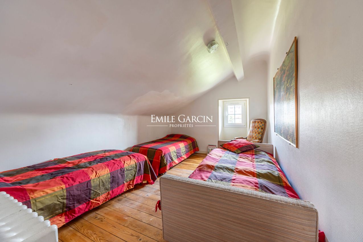 La demeure propose aujourd'hui six chambres, dont une magnifique suite parentale avec cheminée et salle d'eau, ainsi que deux autres suites parentales avec baignoire. Ces espaces confortables et raffinés permettent d'accueillir aisément une grande famille ou de recevoir des invités dans un cadre privilégié. Au deuxième étage, trois autres chambres et une partie de combles à aménager. Les espaces de réception s'ouvrent sur une agréable terrasse tournée vers le parc, invitant à profiter des beaux jours dans un cadre intime et préservé. Un grand garage complète la propriété, avec deux pièces supplémentaires offrant un potentiel idéal pour créer des espaces complémentaires à la maison, tels qu'un atelier, un bureau ou une salle de loisirs.