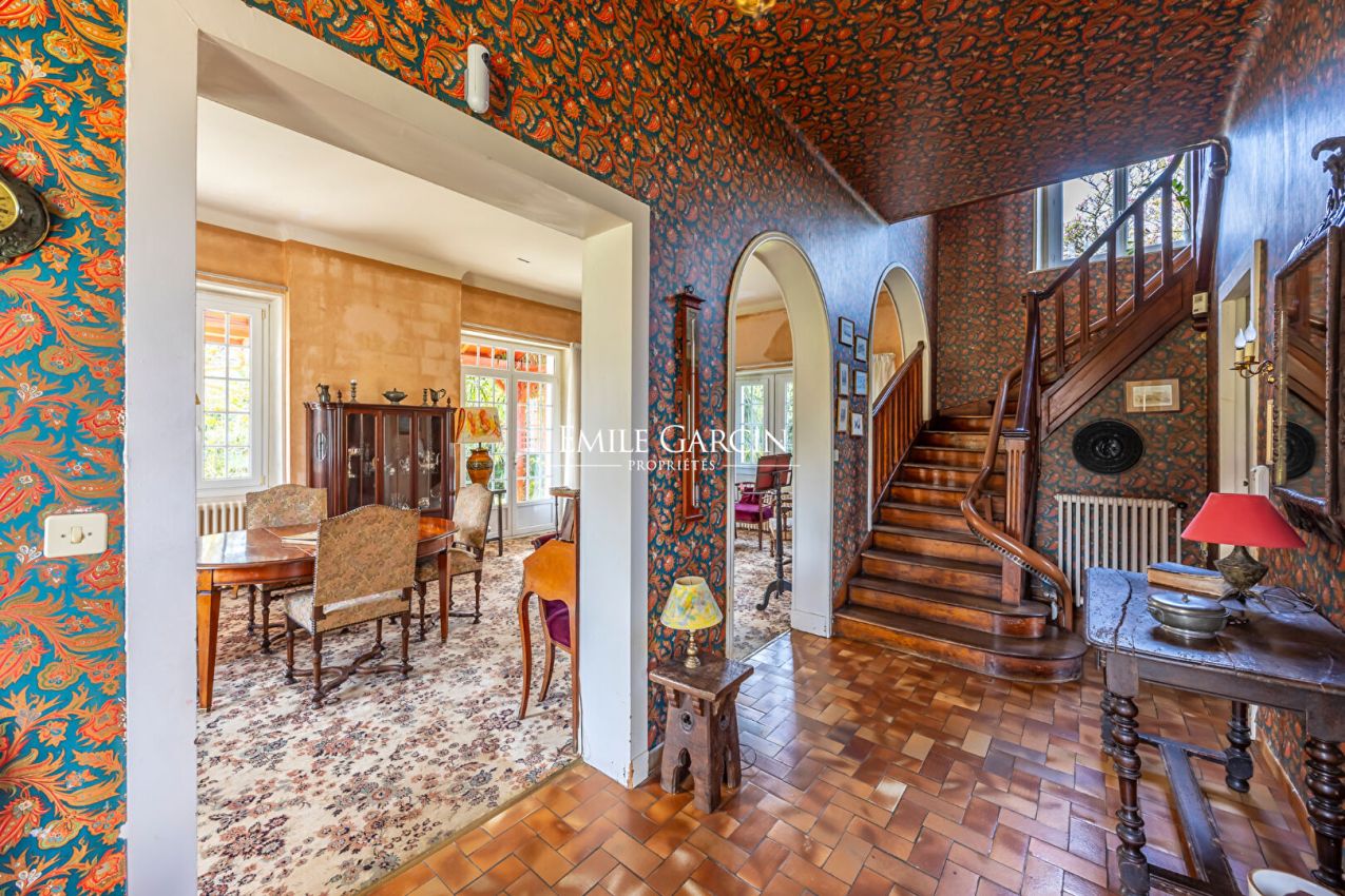 Les volumes généreux, les hauteurs sous plafond remarquables et les proportions harmonieuses mettent en valeur l'architecture d'époque, et le magnifique escalier principal structure la maison avec élégance. Les fenêtres à double vitrage offrent une vue imprenable sur le jardin et baignent l'espace de lumière naturelle, tout en garantissant confort et isolation.