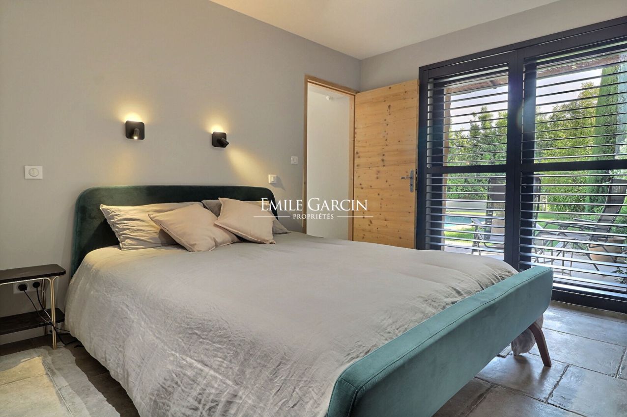 A 5 minutes à pieds du centre-ville de Maussane-les-Alpilles se trouve une charmante maison contemporaine avec 4 chambres, 4 salles de bains, entièrement rénovée et toute équipée. Climatisation. Piscine chauffée de 6 x 3 m.