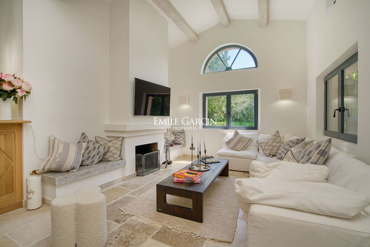 Nichée dans un écrin de verdure, à proximité de Ramatuelle et Saint-Tropez, cette élégante maison de 260 m² offre un cadre paisible et convivial. Elle se compose de 3 chambres dans la maison principale, d'un dortoir ainsi que d'une maison d'amis indépendante avec 1 chambre. Le jardin paysager accueille un parcours pour enfants et une piscine chauffée et sécurisée (10x6 m).