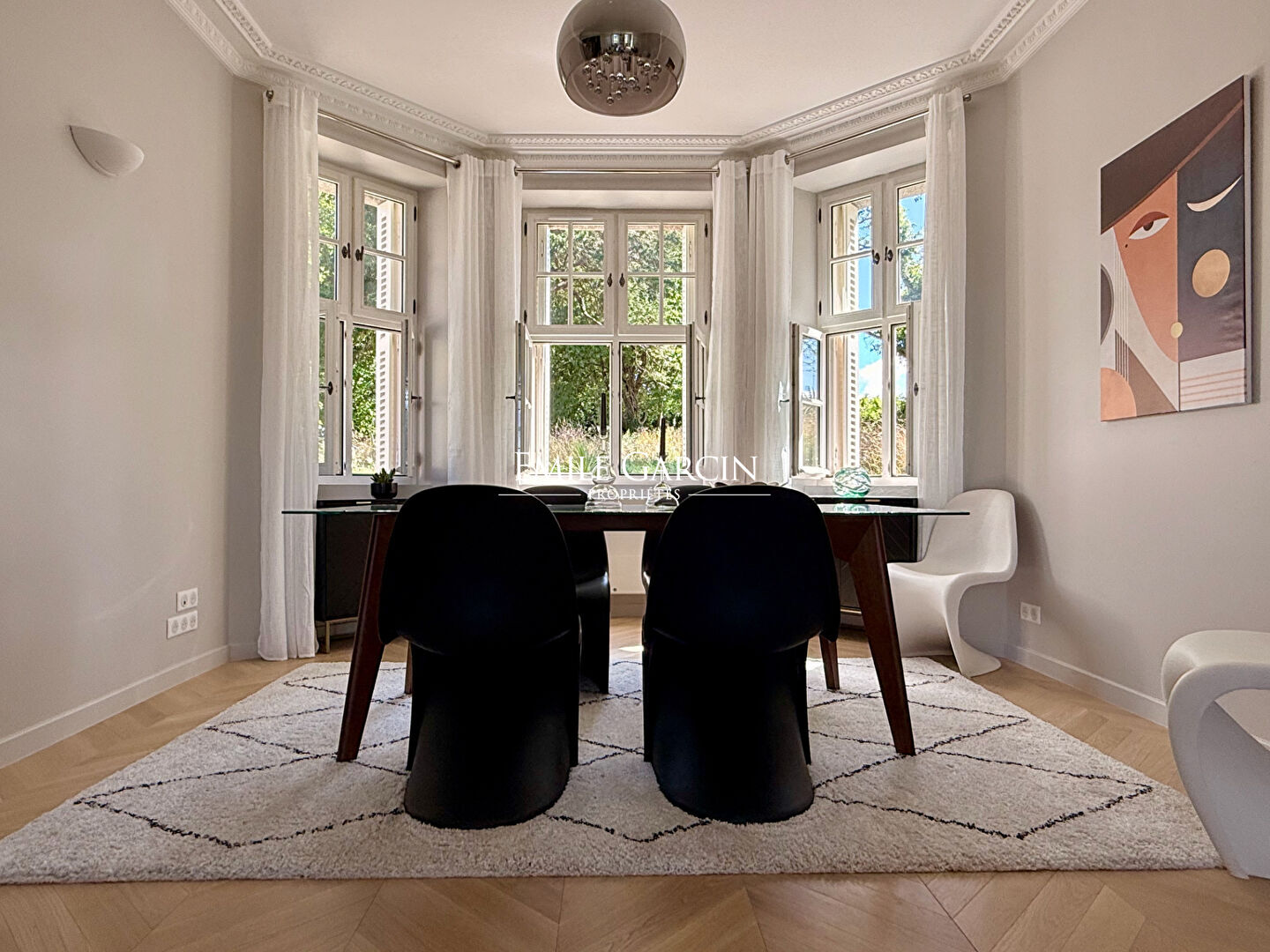 Le salon parqueté en chêne de 53 m², la cuisine soignée, et deux pièces en rez-de-jardin prêtes à accueillir spa ou espace bien-être traduisent un confort maîtrisé. A l'étage, trois chambres avec salles de bains. Sous les combles, un grand bureau ou chambre supplémentaire complète l'ensemble, avec salle d'eau.