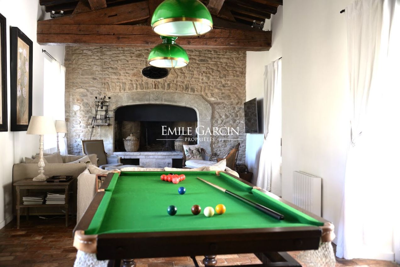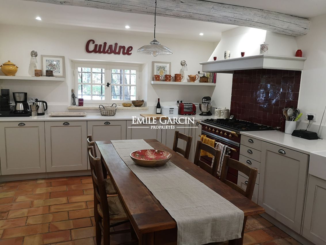 La propriété propose une cuisine équipée ouvrant sur une grand terrasse extérieure ombragée; deux beaux salons à la décoration raffinée, dont un avec billard.