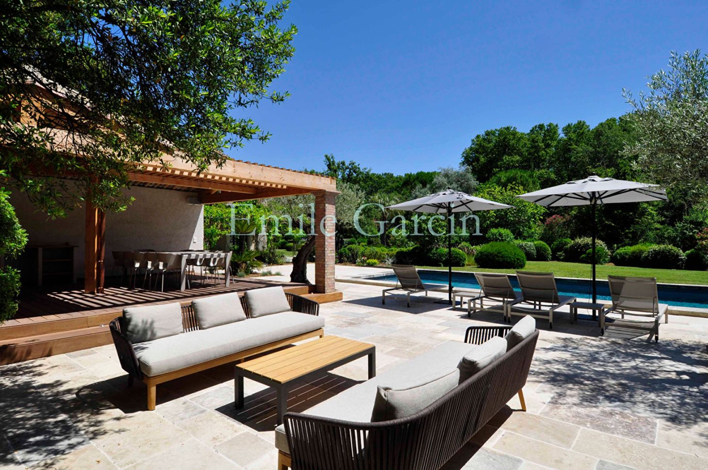 A 5 minutes du centre de Saint-Rémy de Provence, dans un environnement paisible, mas de charme au coeur de son grand jardin planté d'essences méditerranéennes et de fruitiers. La bâtisse, restaurée et décorée avec goût, offre des pièces de réception ouvertes sur la terrasse et le jardin, 5 chambres climatisées (dont une indépendante) et 5 salles de bains. Une piscine chauffée et son pool-house vous inviteront à passer de beaux moments de détente en famille ou entre amis, tennis.