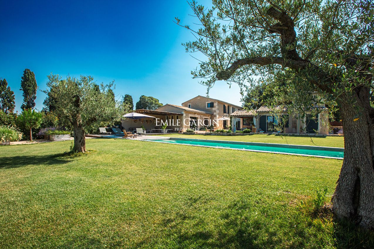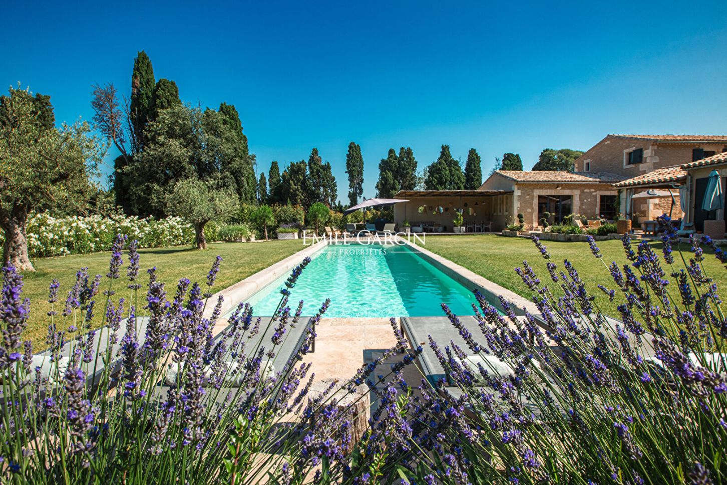 A Saint-Rémy-de-Provence, en campagne. Mas entièrement climatisé et rénové avec goût environ 290m², jardin arboré de 8000m², piscine chauffée 15m x 4 protégée par un volet roulant. 5 chambres, dont une chambre d'appoint et 5 salles de bains. Un havre de paix en Provence.