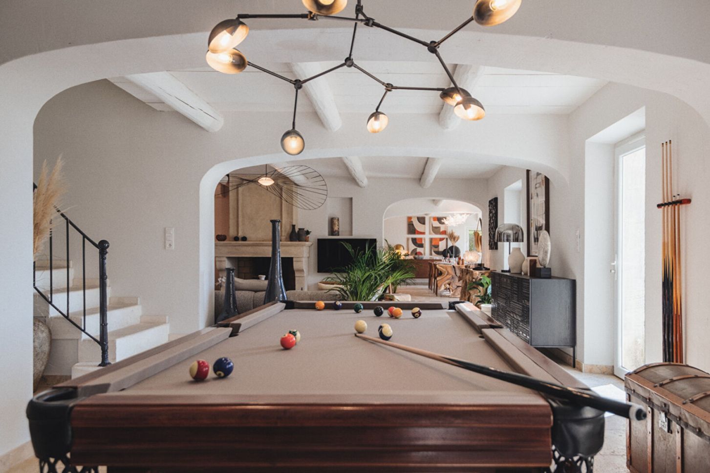 A 2 minutes de Maussane, dans un environnement calme avec vue sur la prairie, très beau mas de 255 m², entièrement climatisée sur un terrain de 2.000 m² . 5 chambres, 5 salles de bains, billard et bar, piscine chauffée 5 x 10m, pétanque.