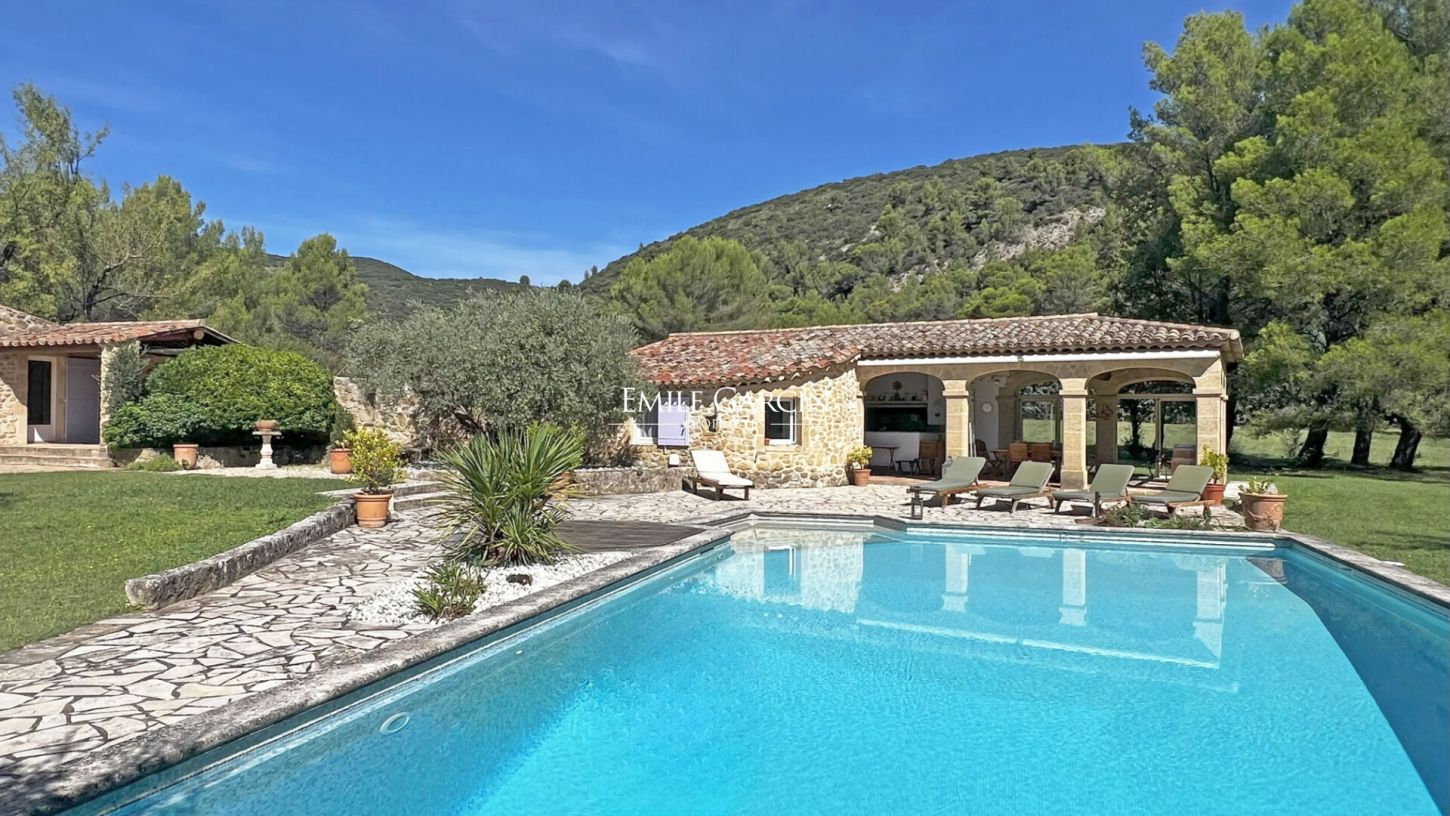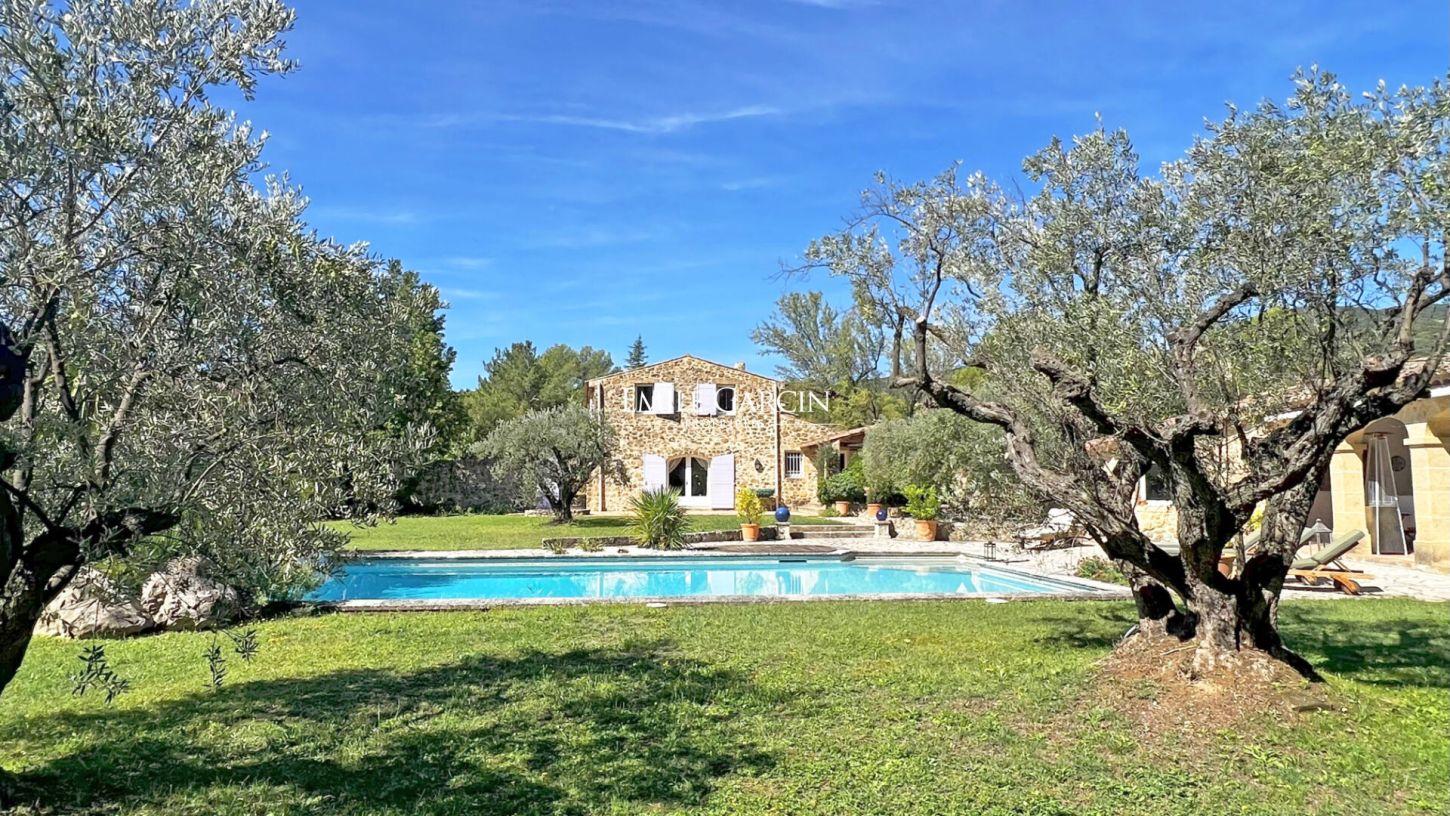 Proche du charmant village de Lauris, à 35 minutes d''Aix-en-Provence et sa gare TGV. Nichée dans un domaine de 9,2 ha avec une oliveraie de 160 arbres, un étang et une piscine, cette propriété authentique offre un cadre naturel d'exception. Le mas en pierre d'environ 340 m² habitables comprend un vaste salon voûté avec cheminée, salle à manger, cuisine ouverte sur terrasse, bibliothèque et bureau. A l'étage, 4 chambres avec salles de bains privatives et dressing. Dépendances : hangar en pierre, garage, abris pour 4 voitures, pool house avec chambre, cuisine et salle de bains. Un lieu rare alliant charme, espace et sérénité, idéal pour les amoureux de la Provence.