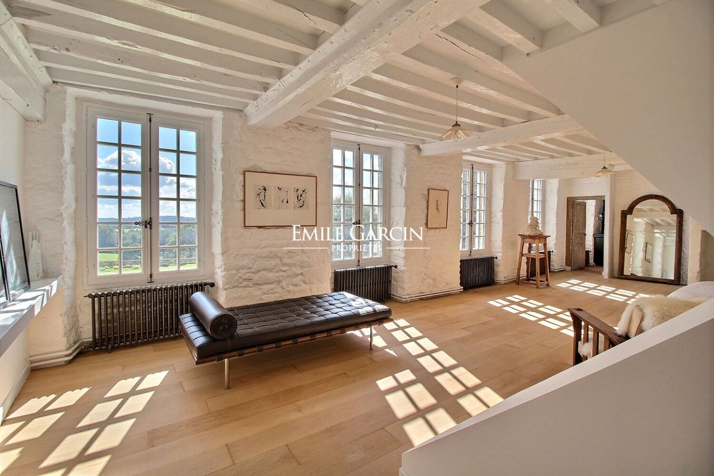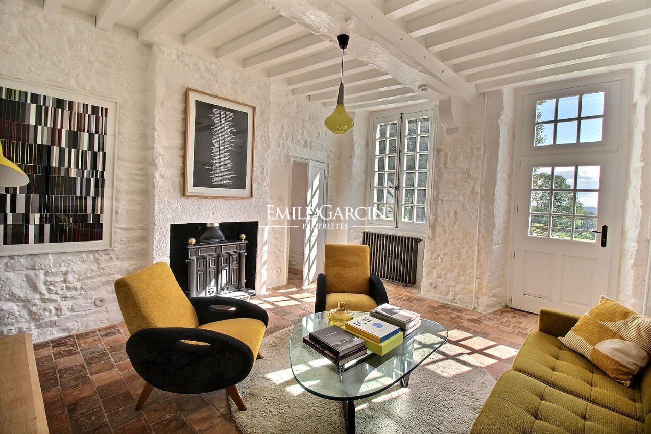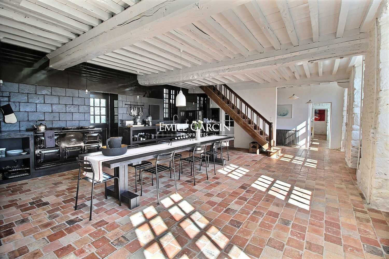 Au rdc : une vaste cuisine équipée avec son Aga faisant office de salle à manger d'environ 60 m² avec fenêtres traversantes, avec arrière cuisine. Deux salons dont un grand salon avec cheminée habillé de boiseries d'époque Louis XV d'origine. Une buanderie, cellier cave et chaufferie se trouve dans l 'aile technique. Deux escaliers desservent les étages. Au premier étage : une « master bedroom » de 55 m² qui regarde la nature et 4 chambres dont 3 salles d 'eau et une salle de bain. Au deuxième étage : un grenier d 'une surface de 140 m2 pouvant aisément être aménagé. Dépendances : Deux pavillons agrémentent le jardin , une ancienne forge en contrebas, et un commun jouxtant le prieuré d'une surface de 75 m 2 . Un jardin en terrasses posé face au prieuré offre une vue exceptionnelle sur la campagne ; un verger et un potager agrémentent le tout. Offrez vous une nouvelle vie dans un prieuré ouvert sur la modernité !