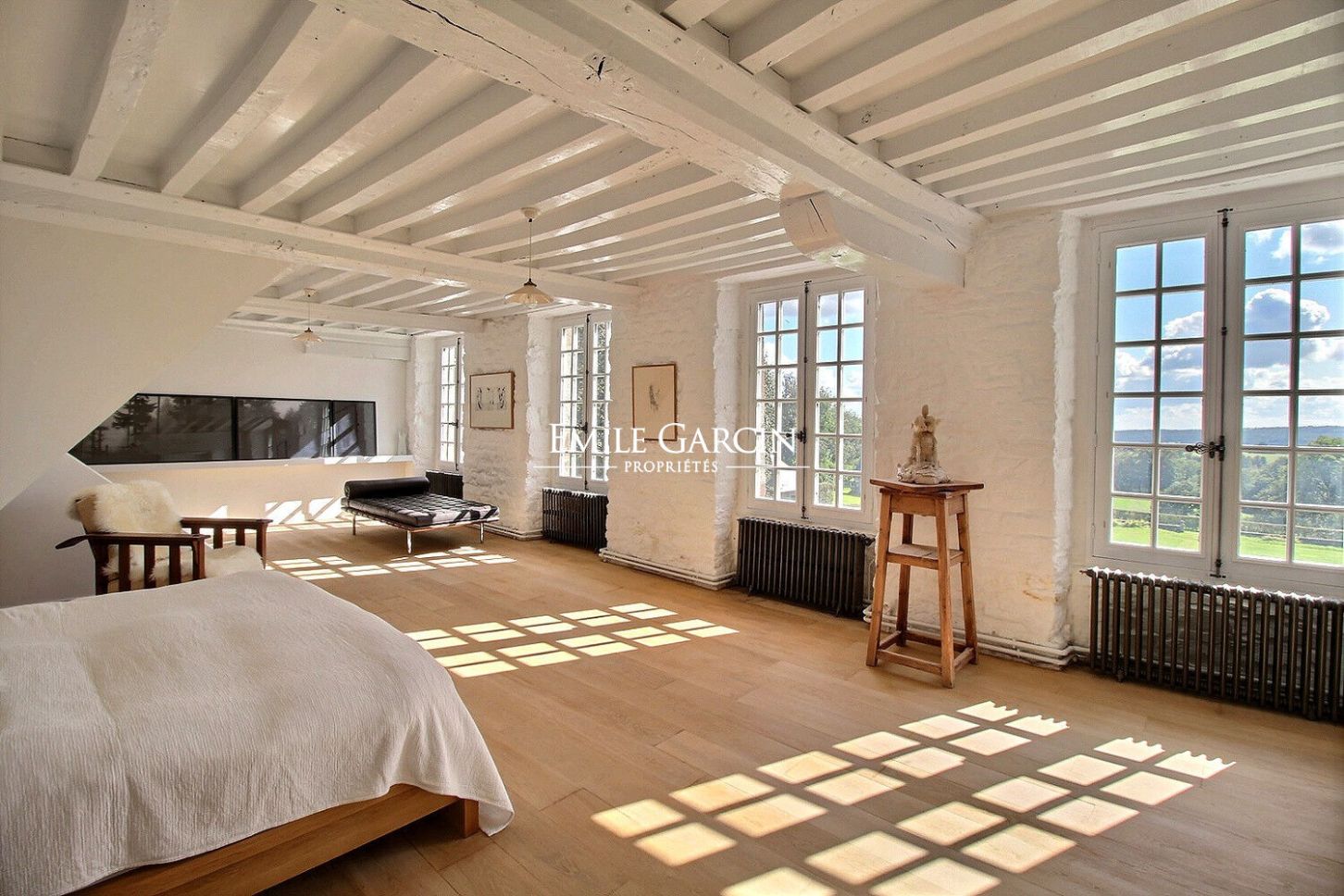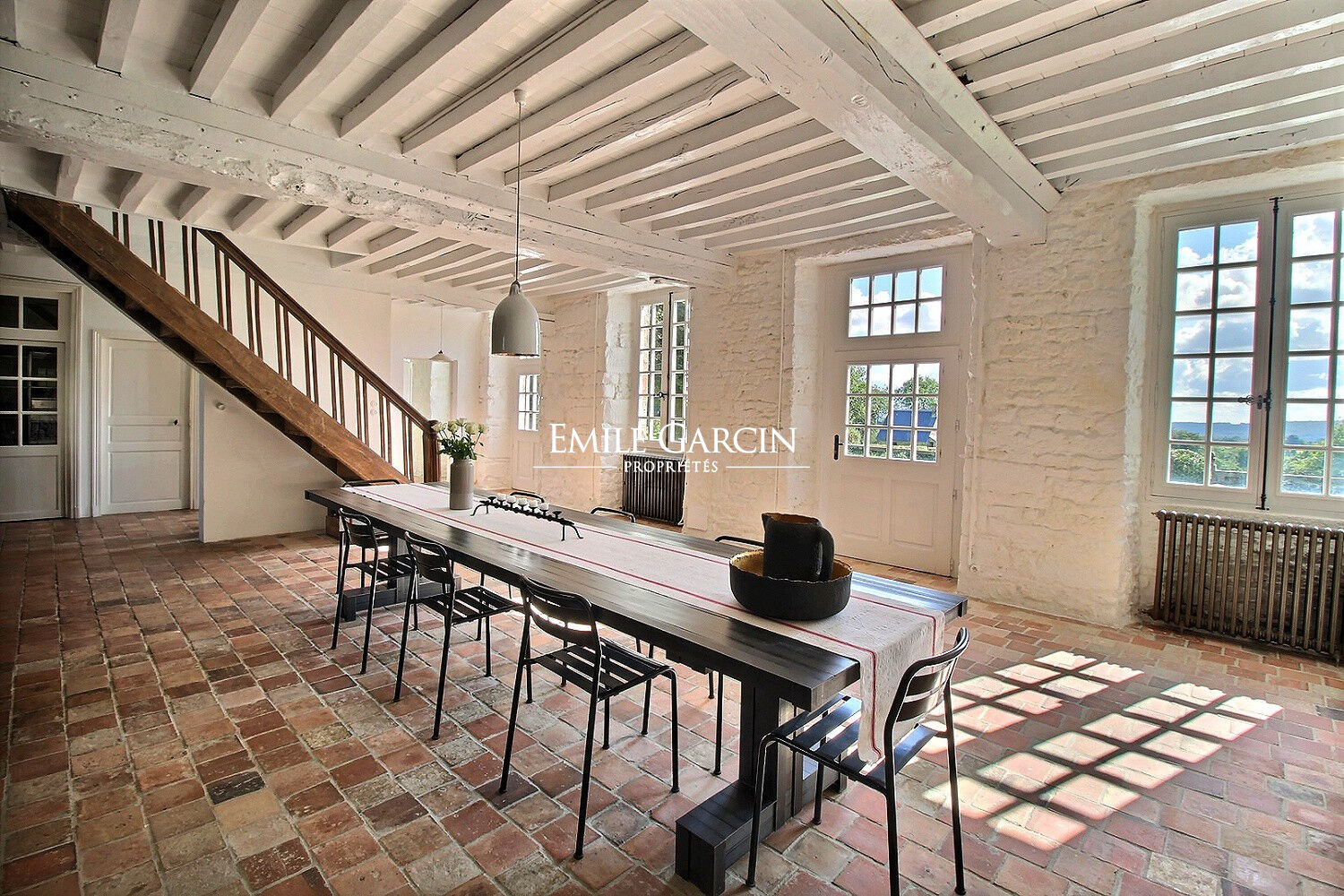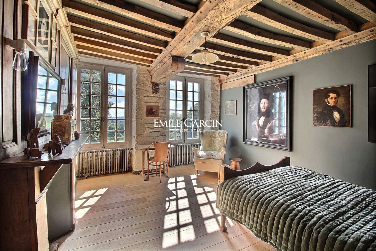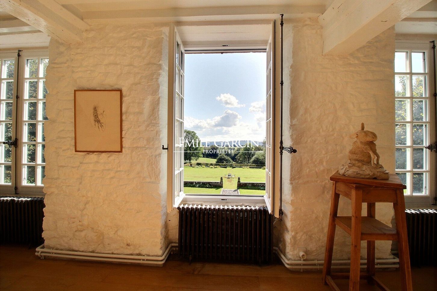Au rdc : une vaste cuisine équipée avec son Aga faisant office de salle à manger d'environ 60 m² avec fenêtres traversantes, avec arrière cuisine. Deux salons dont un grand salon avec cheminée habillé de boiseries d'époque Louis XV d'origine. Une buanderie, cellier cave et chaufferie se trouve dans l 'aile technique. Deux escaliers desservent les étages. Au premier étage : une « master bedroom » de 55 m² qui regarde la nature et 4 chambres dont 3 salles d 'eau et une salle de bain. Au deuxième étage : un grenier d 'une surface de 140 m2 pouvant aisément être aménagé. Dépendances : Deux pavillons agrémentent le jardin , une ancienne forge en contrebas, et un commun jouxtant le prieuré d'une surface de 75 m 2 . Un jardin en terrasses posé face au prieuré offre une vue exceptionnelle sur la campagne ; un verger et un potager agrémentent le tout. Offrez vous une nouvelle vie dans un prieuré ouvert sur la modernité !