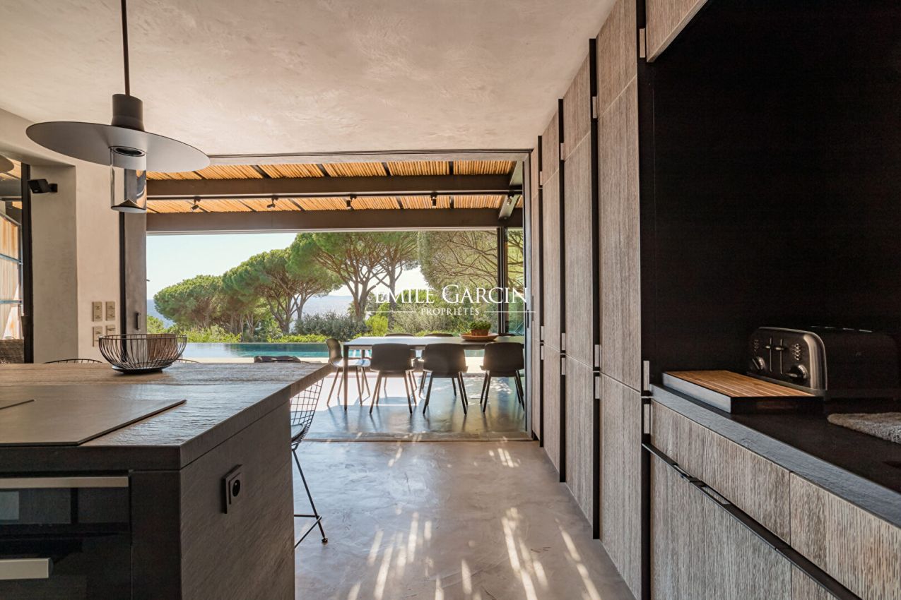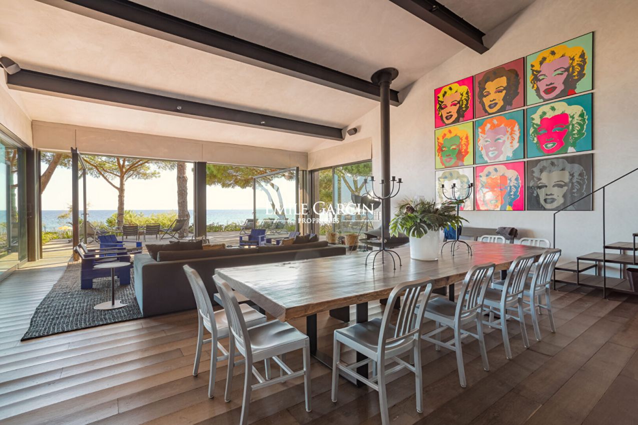 A quelques minutes en voiture de Saint-Tropez, propriété entièrement neuve avec son Beach-House sur un terrain de 4 300m2. Accès direct à la plage, vue mer. Dans un environnement calme et verdoyant. Piscine chauffée. Salle de sport. Terrain de pétanque. Mise à disposition de 2 Paddles. Bouée d'amarrage. 7 chambres, 7 salles de bains. Numero d'enregistrement : 83048 000798 Z9