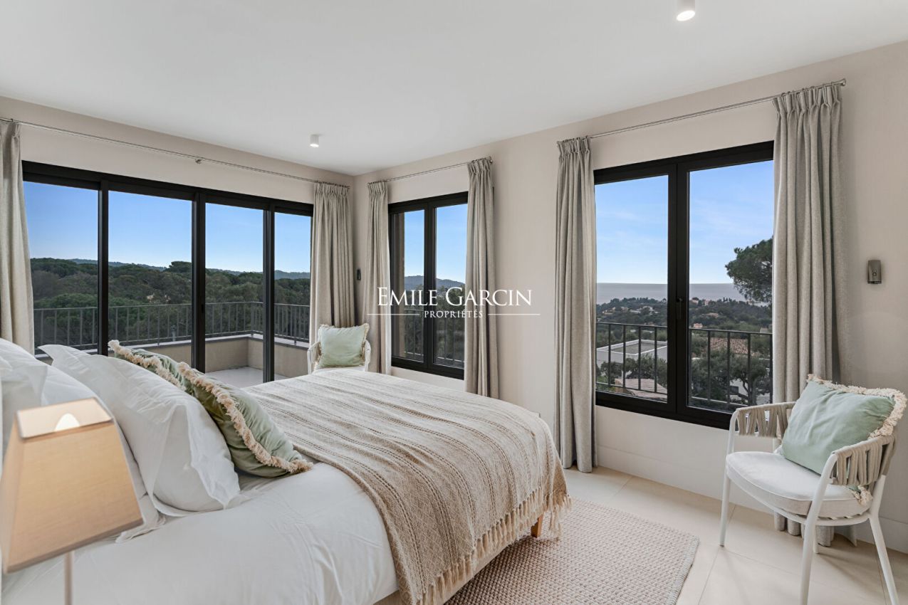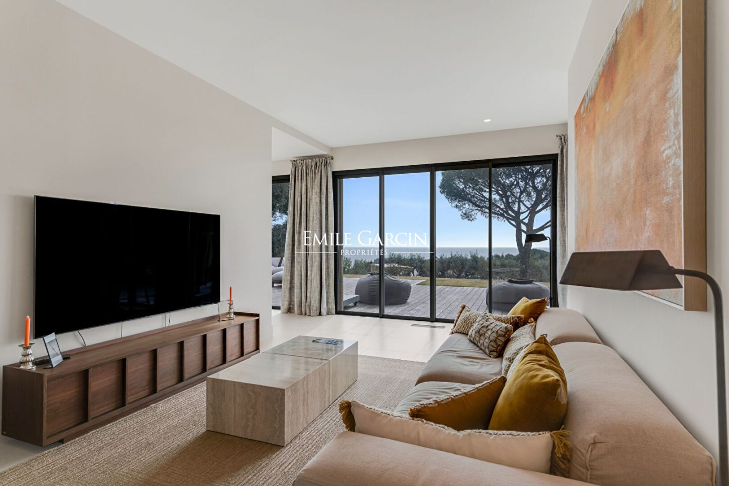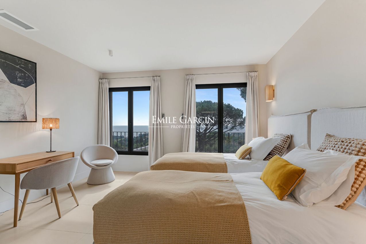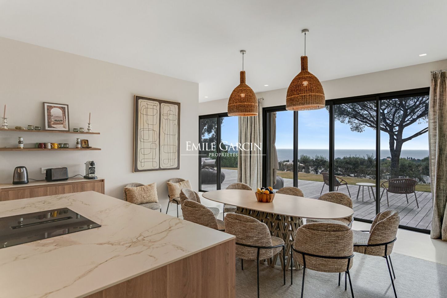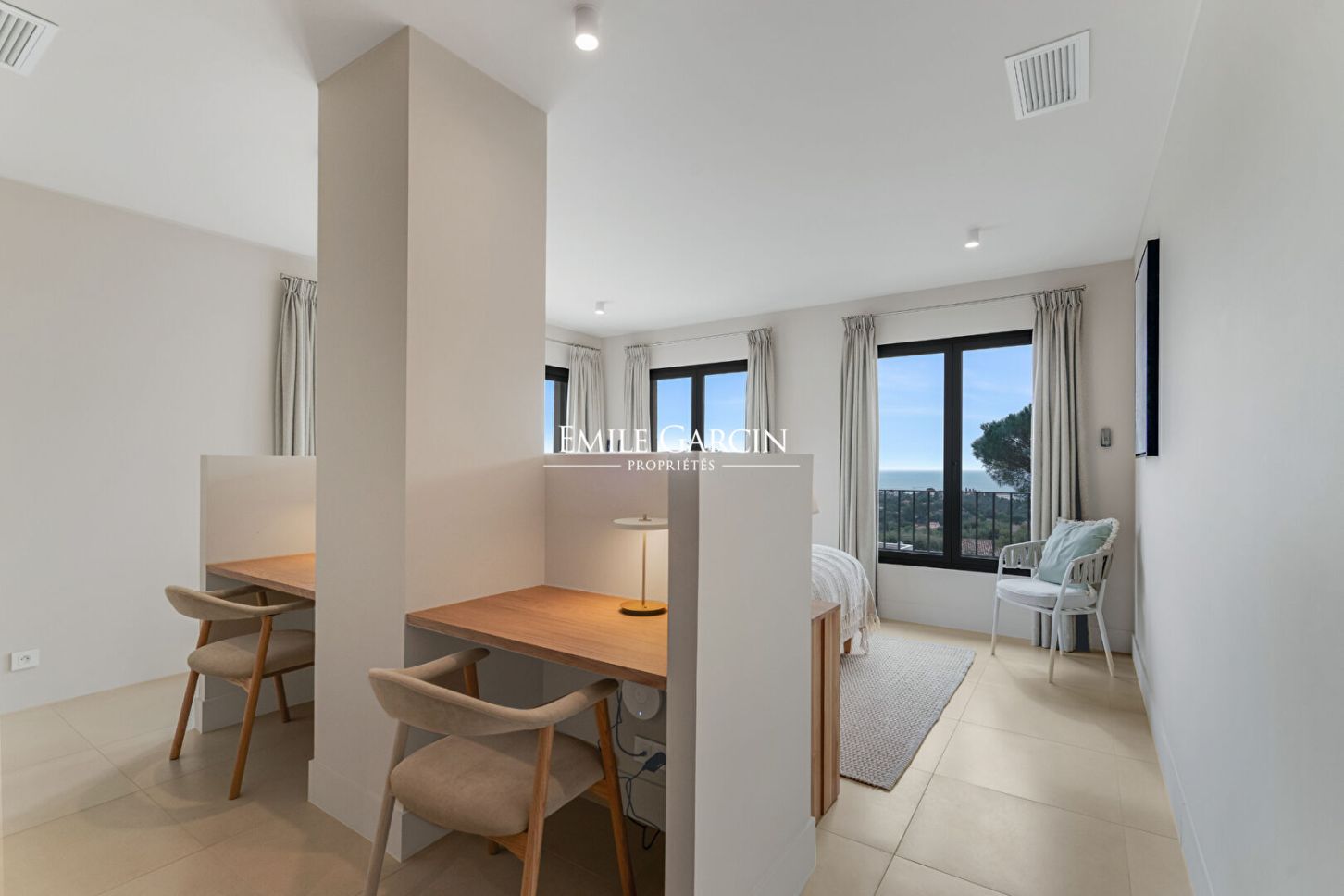 Située au sein d'un domaine privé, sur les hauteurs de Gigaro, cette villa neuve à la location bénéficie d'une vue mer panoramique exceptionnelle et d'un environnement calme et recherché. La propriété offre cinq chambres, de généreux volumes et de beaux espaces extérieurs aménagés de 150 m², incluant une cuisine d'été idéale pour les moments de convivialité. Une piscine chauffée de 11 x 5 mètres, une table de ping-pong, un garage ainsi que des places de stationnement complètent les prestations de cette villa moderne, parfaite pour des séjours en famille ou entre amis sur la Côte d'Azur.