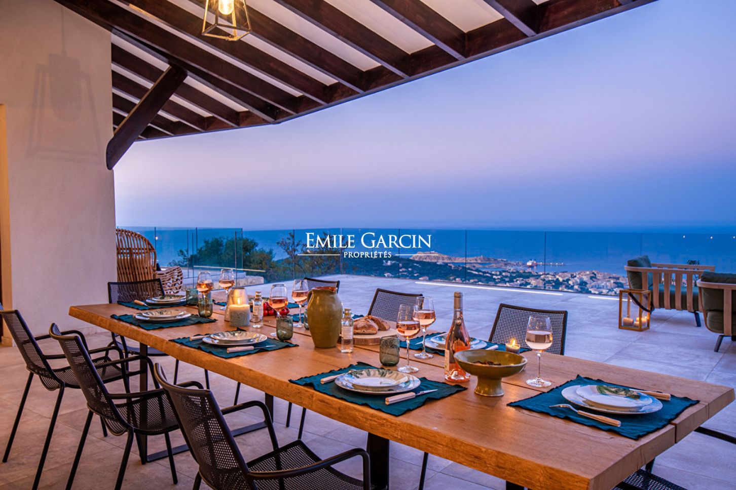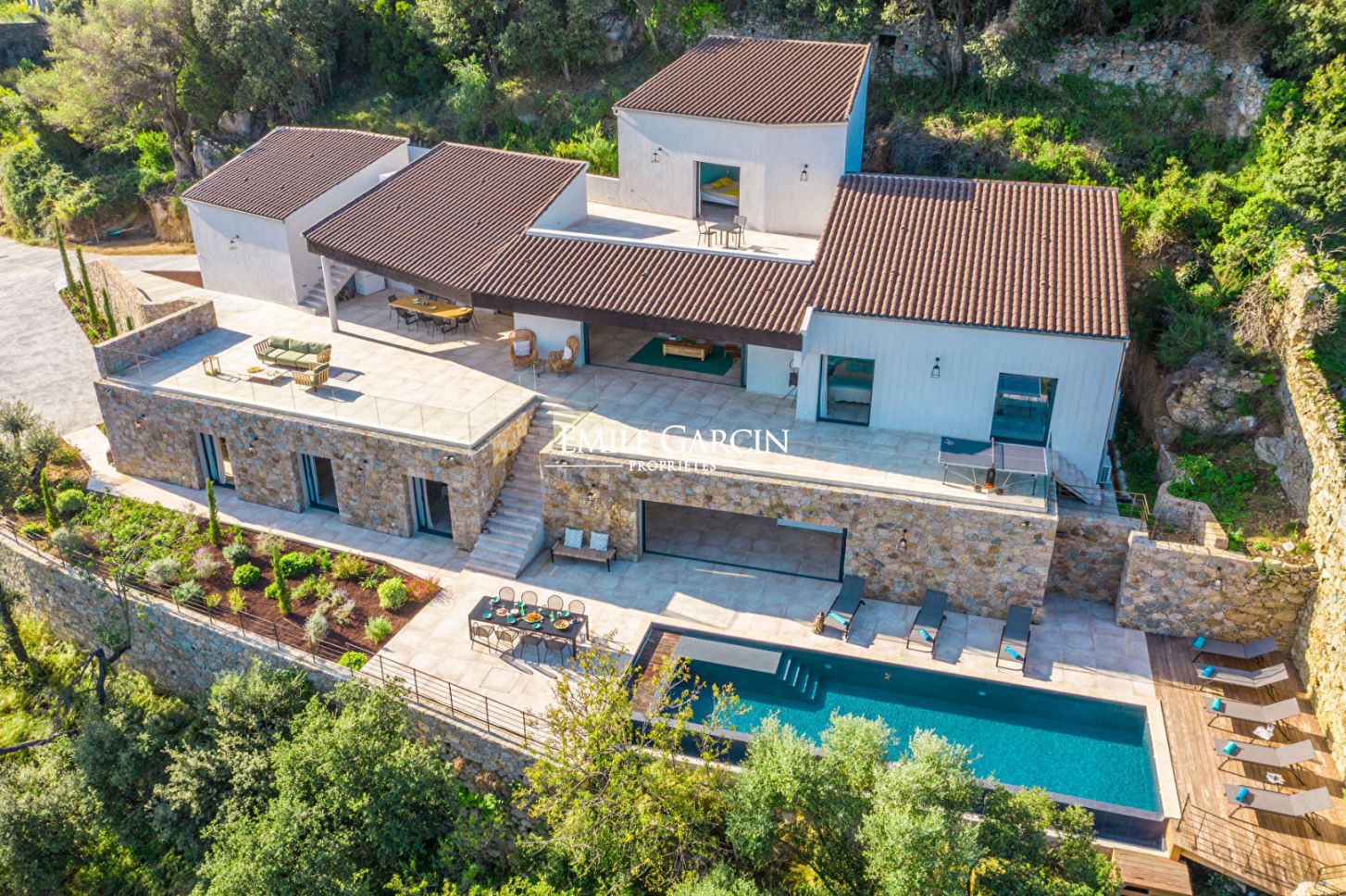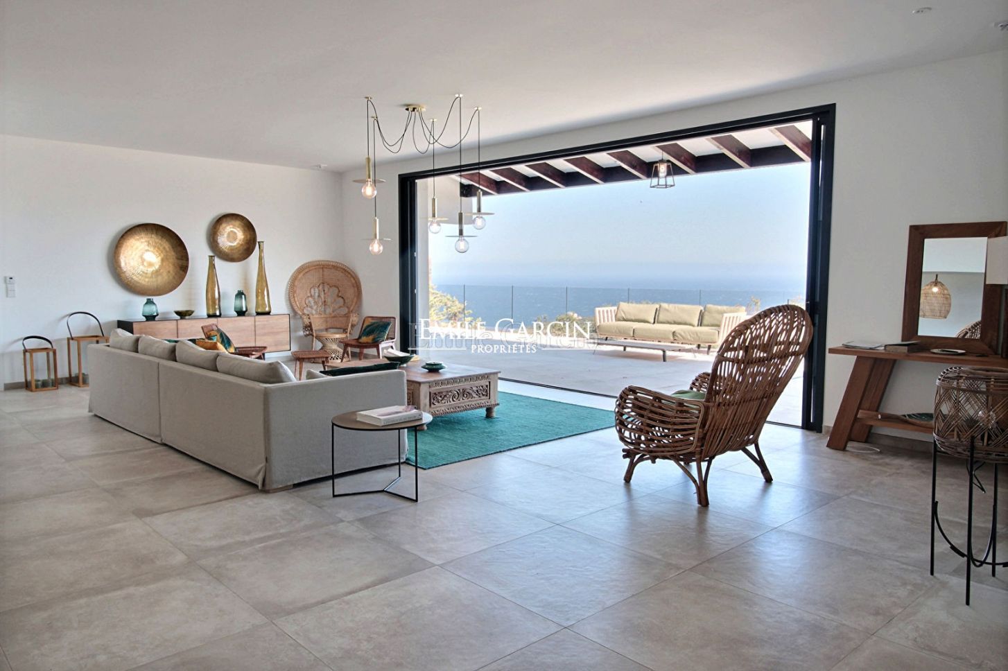 Piscine traitée au sel, à débordement 13 x 5m chauffée, et sécurisée par volet, douche extérieure. Pool house tout équipé avec une grande cuisine, salle à manger, plancha XXL. Le jardin planté d'essences locales est constitué de plusieurs restanques pour profiter de la vue mer de part et d'autre.