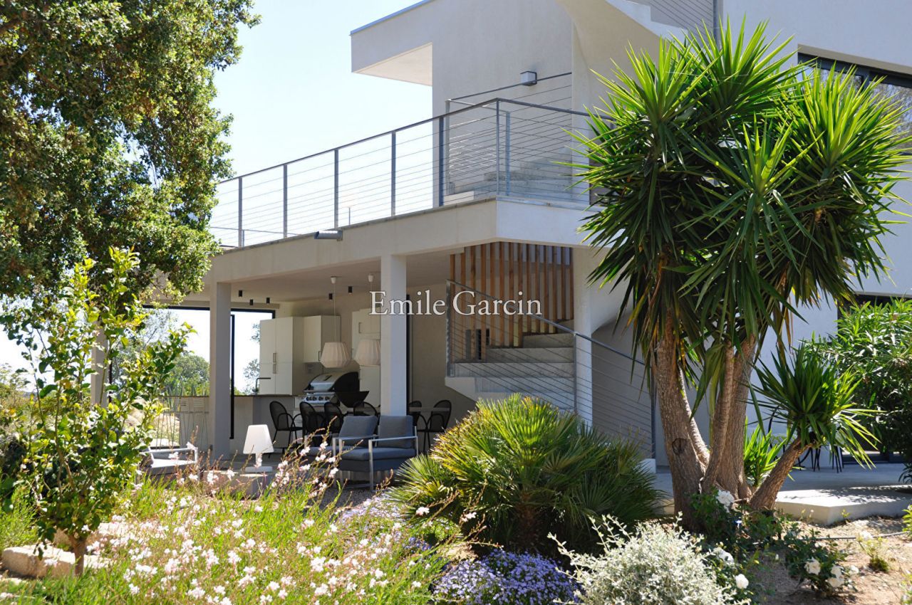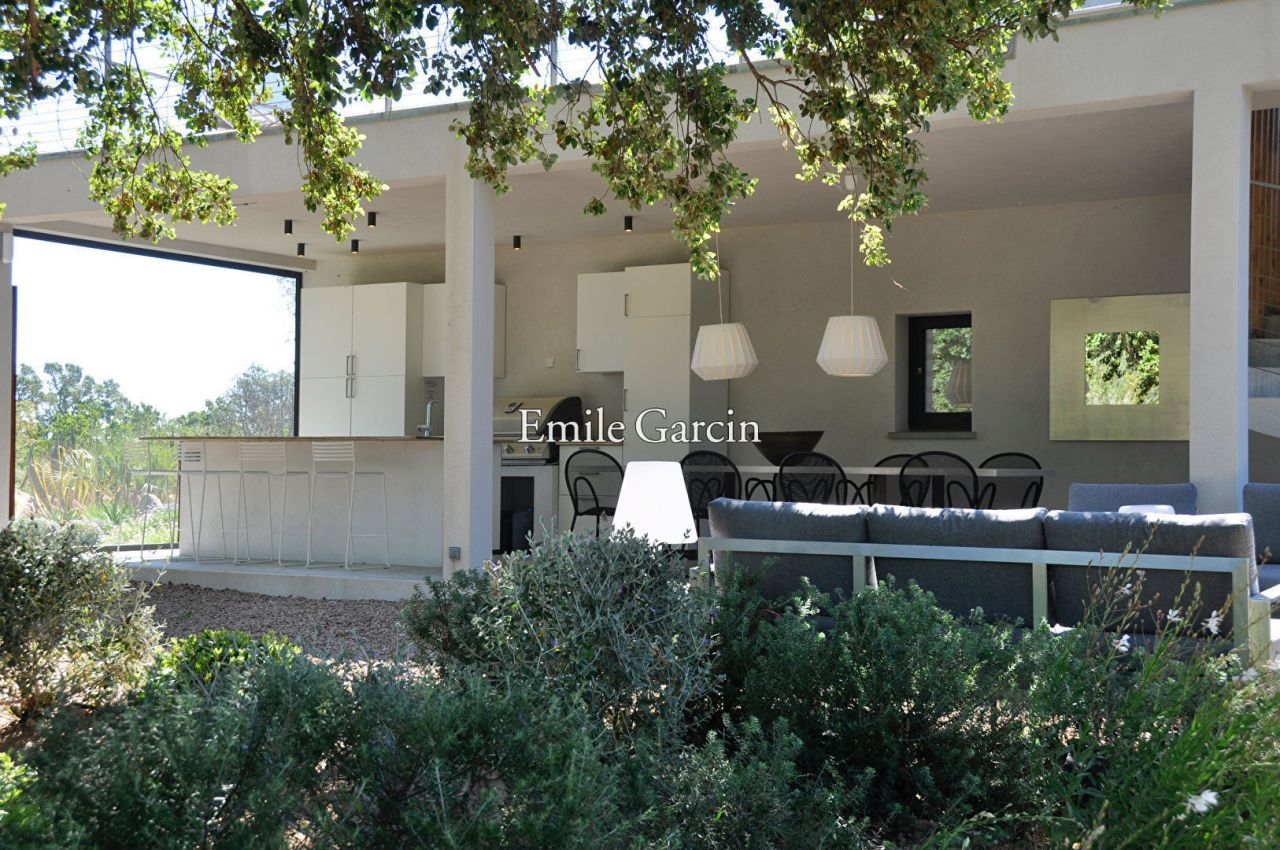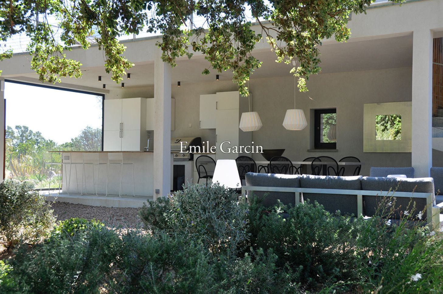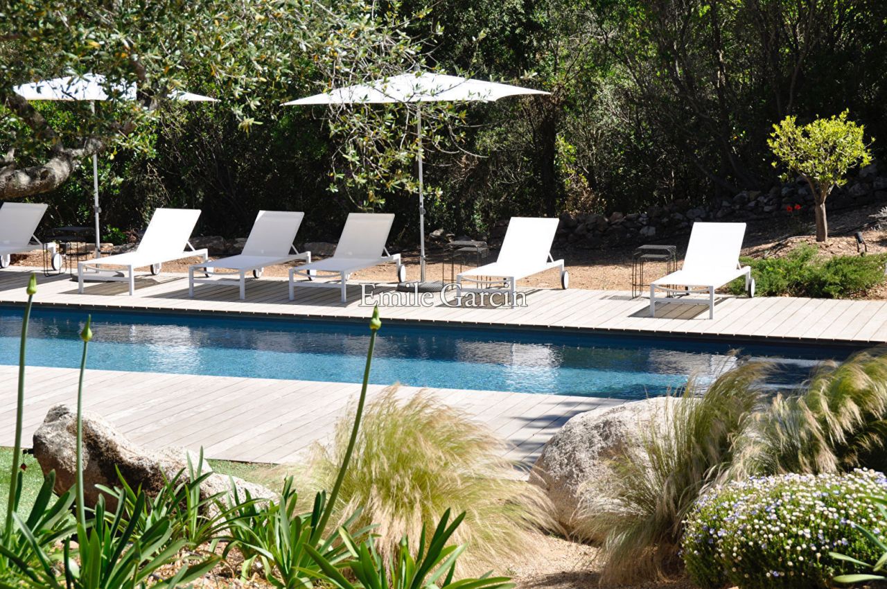 C'est une maison d'architecte, restructurée au printemps 2016, en plein espace Natura 2000, sans nuisance, dévoilant une très belle vue sur la mer à 900 m et la montagne, non loin de la plage de Pinarellu (20 minutes à pieds, 10 minutes en vélo et quelques minutes en voiture). Totalement climatisée. Piscine chauffée. 5 chambres - 5 salles de bains.