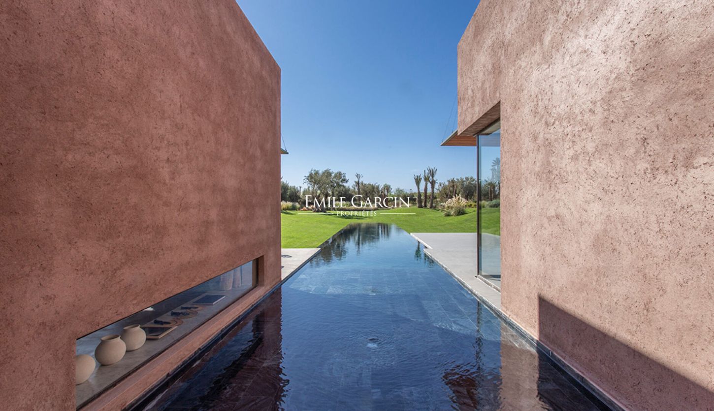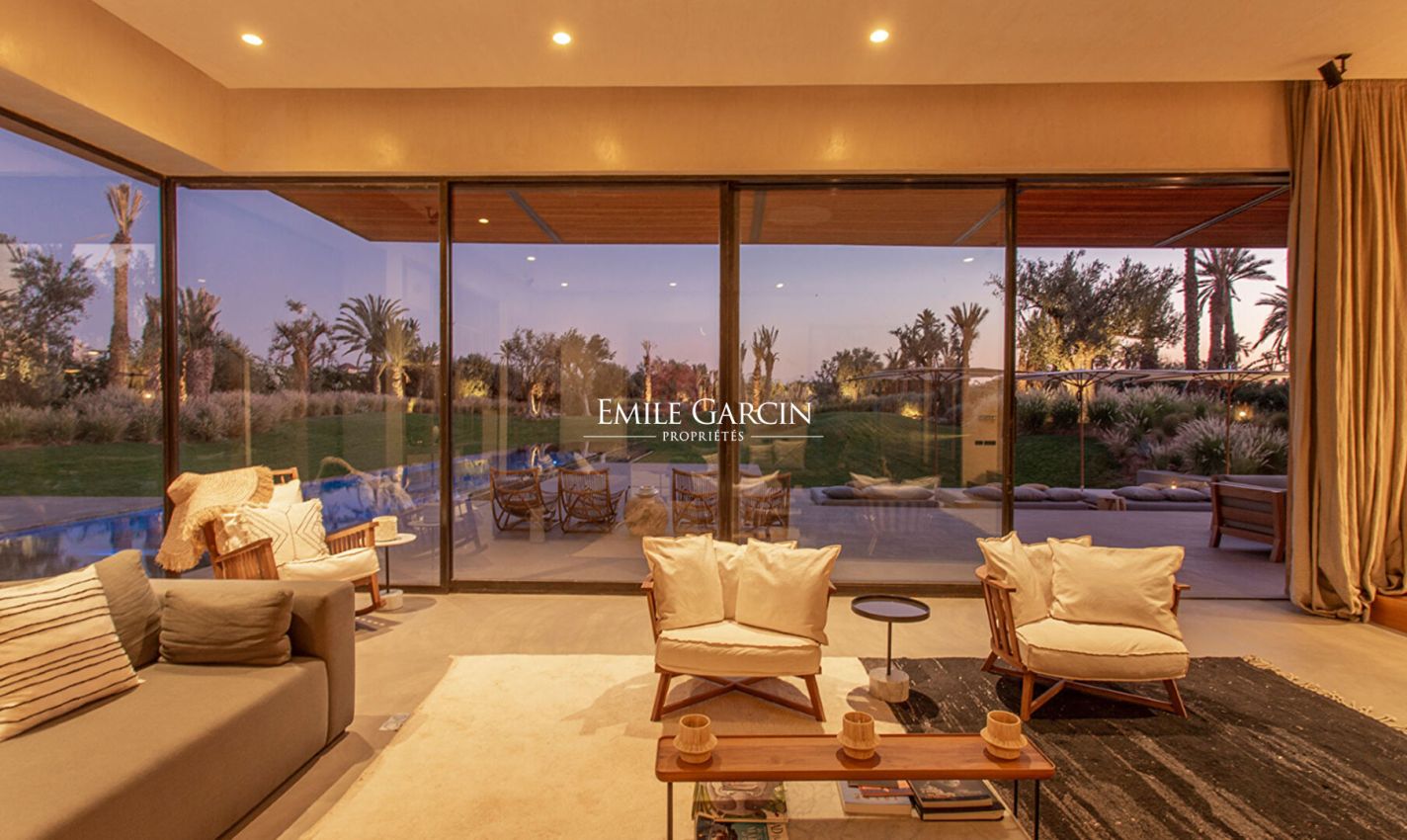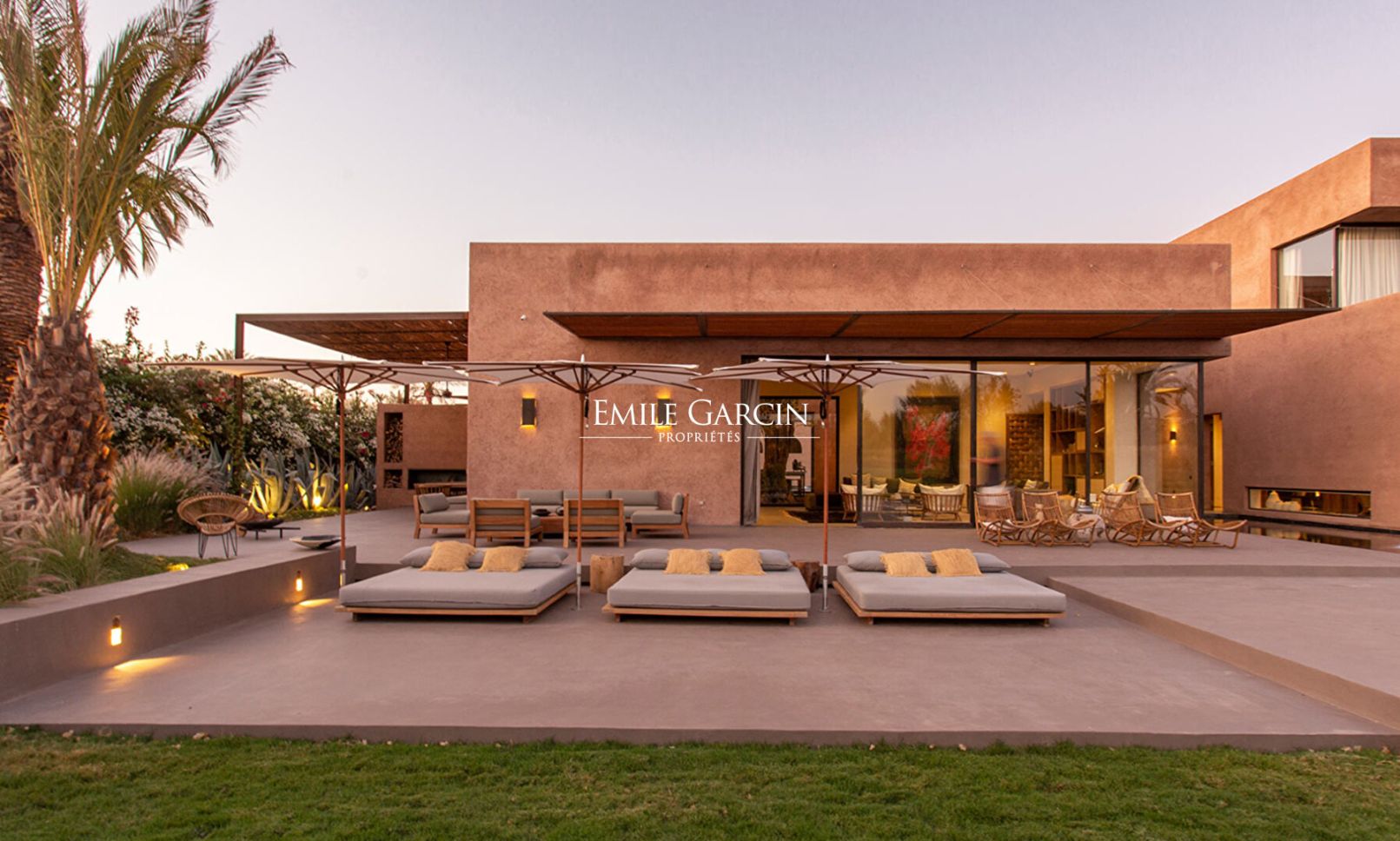 Sur un parc arboré d'un hectare, maison d'architecte de 1000m², vue sur les montagnes de l 'Atlas.
