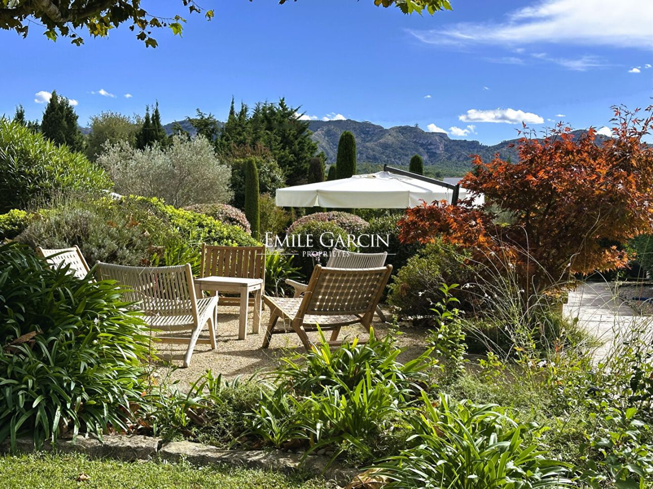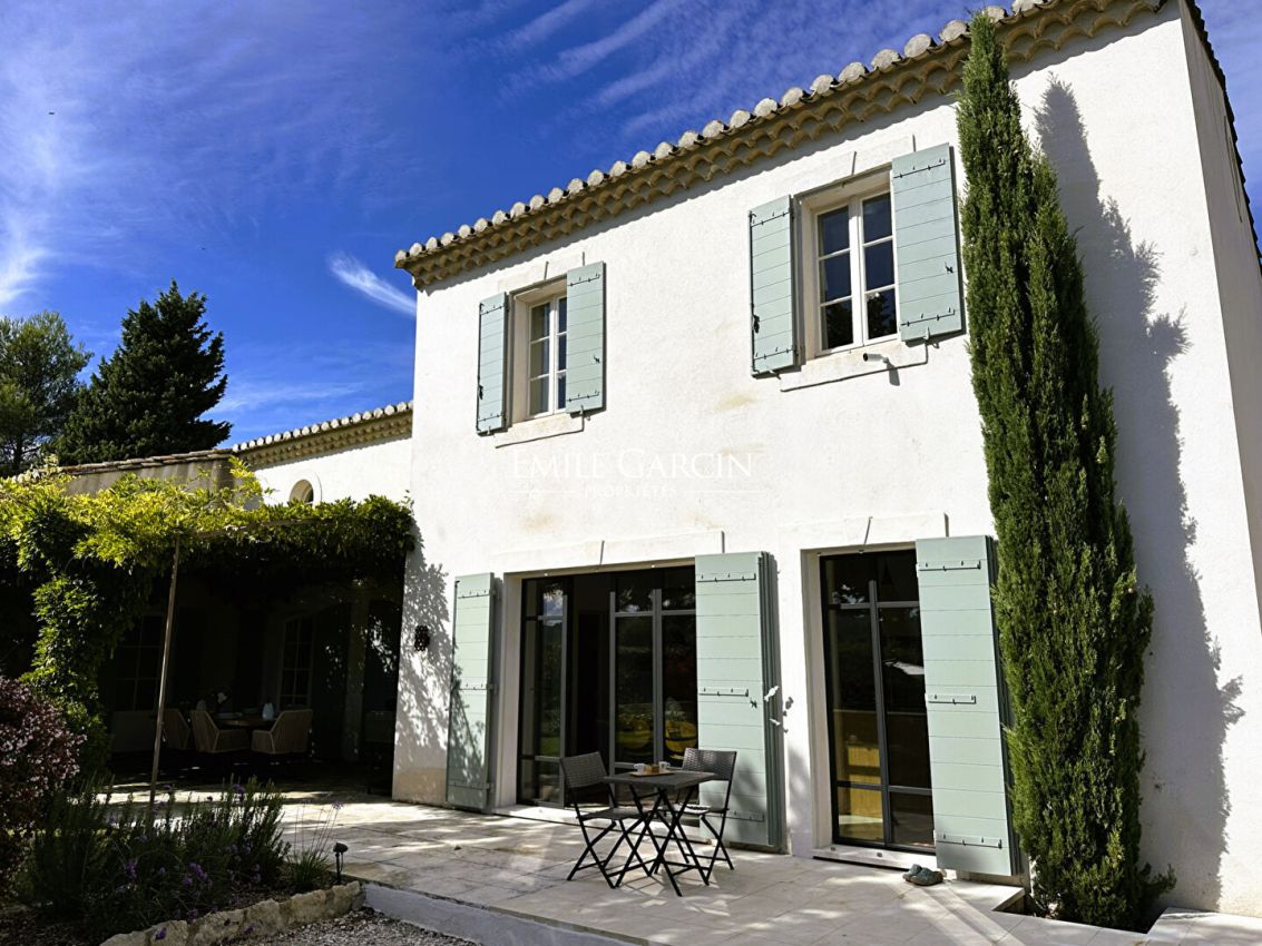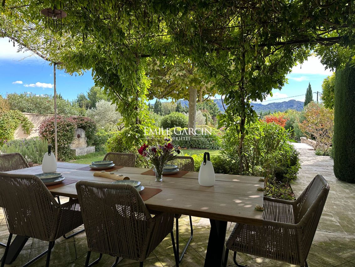 A 5 minutes de voiture du centre ville, Très belle maison avec vue sur les Alpilles, 6 chambres dont une en annexe, 4 salles de bains. Entièrement climatisée. Piscine chauffée 10x 5 m (du 15 Avril à fin octobre).