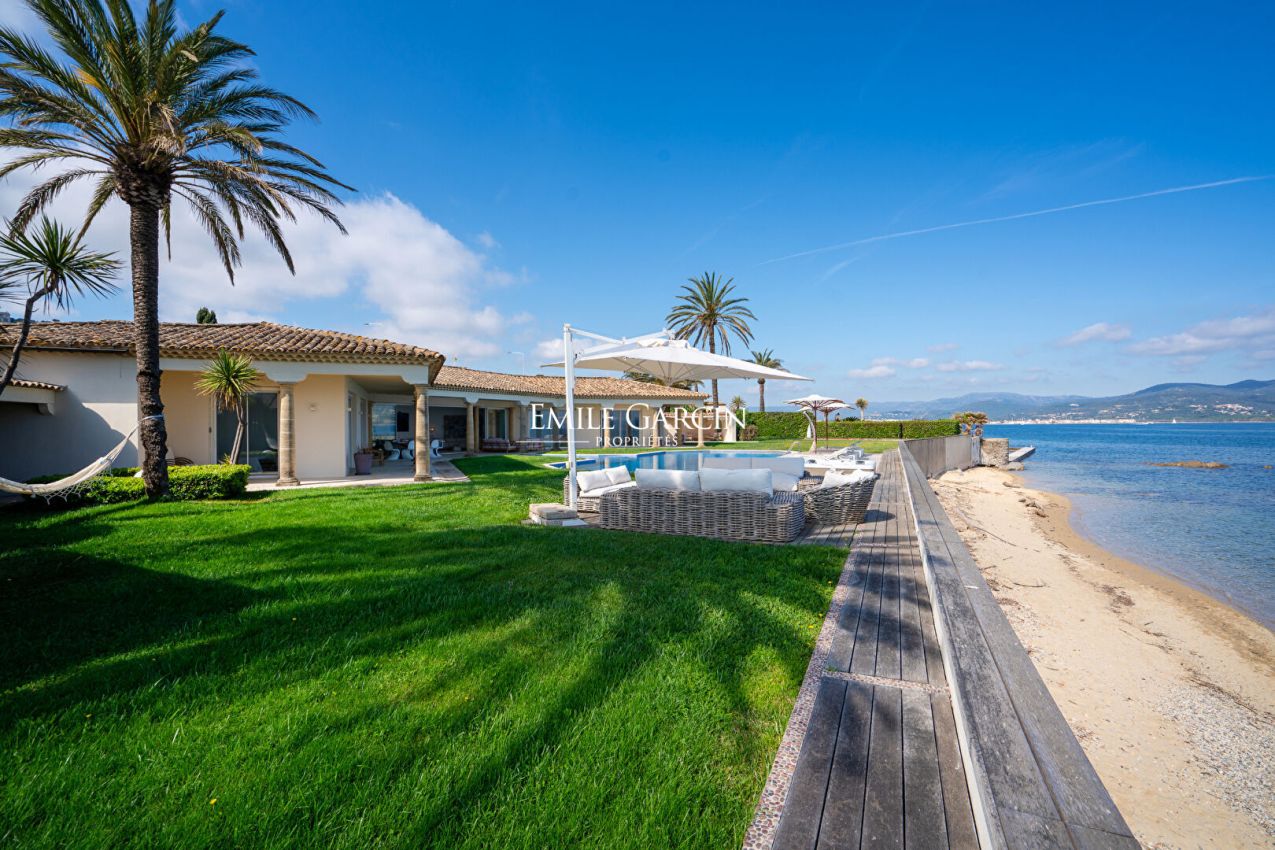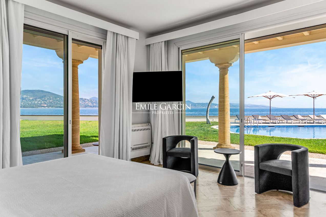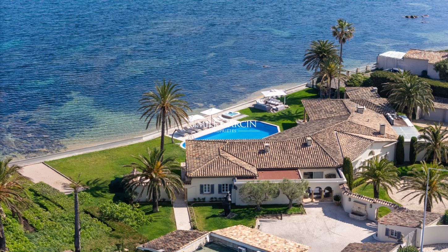 Situation rare pour cette propriété pieds dans l'eau d'environ 400 m², d'inspiration florentine, offrant un cadre unique face à la mer et des prestations de grand standing.