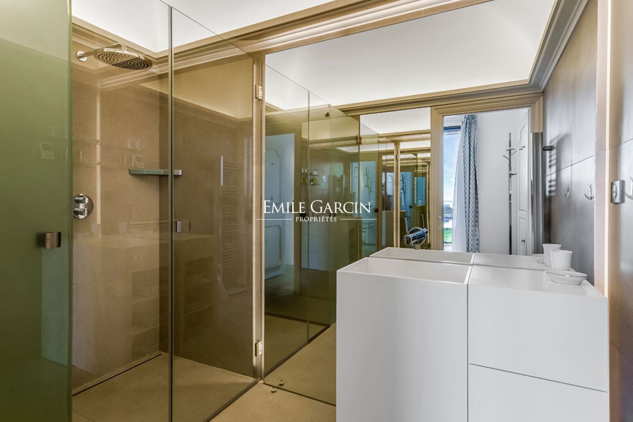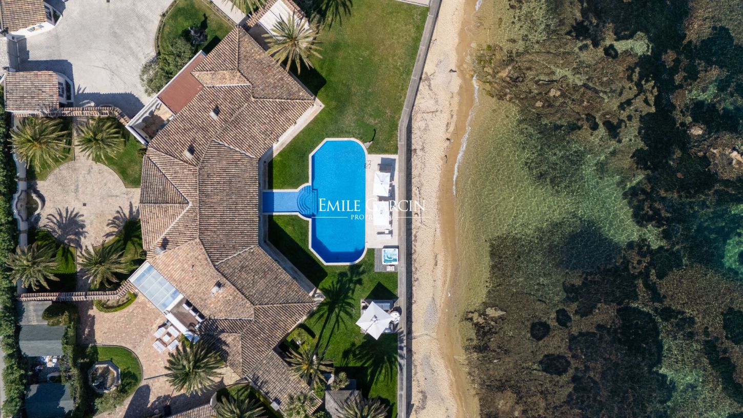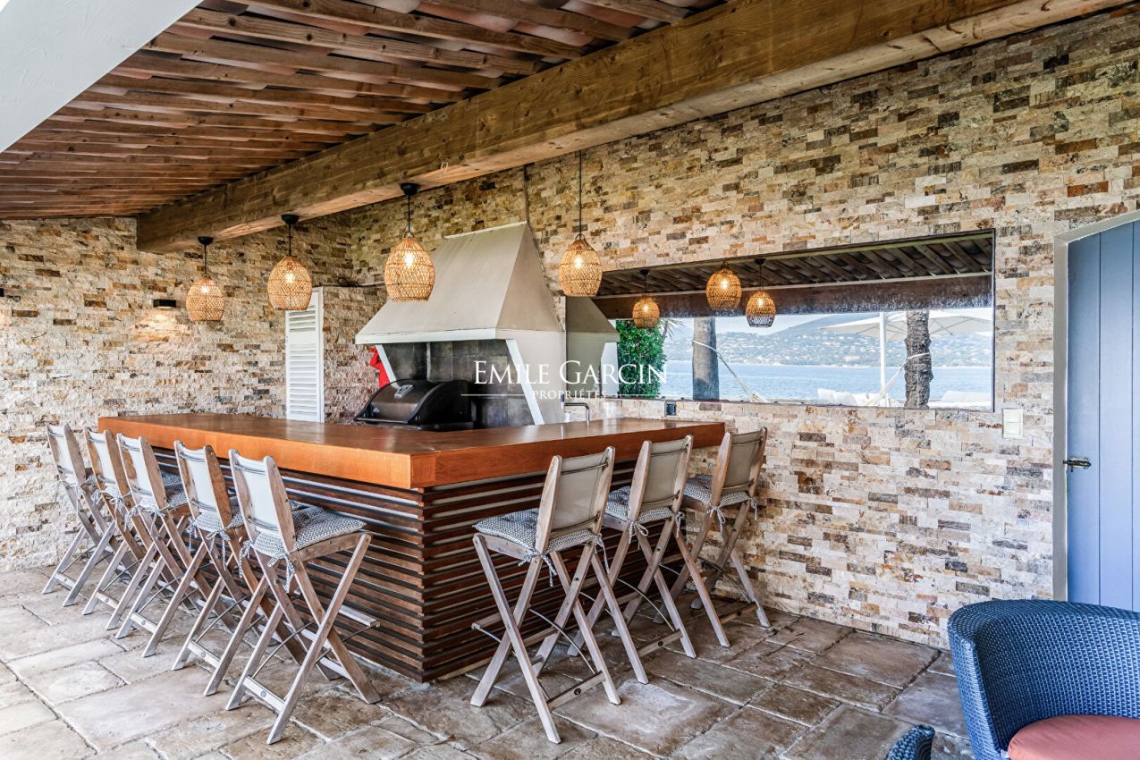 Situation rare pour cette propriété pieds dans l'eau d'environ 400 m², d'inspiration florentine, offrant un cadre unique face à la mer et des prestations de grand standing.