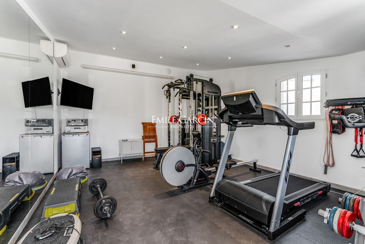 Elle comprend 8 chambres en suite, une piscine chauffée, un jacuzzi avec vue mer, un hammam ainsi qu'une salle de sport.