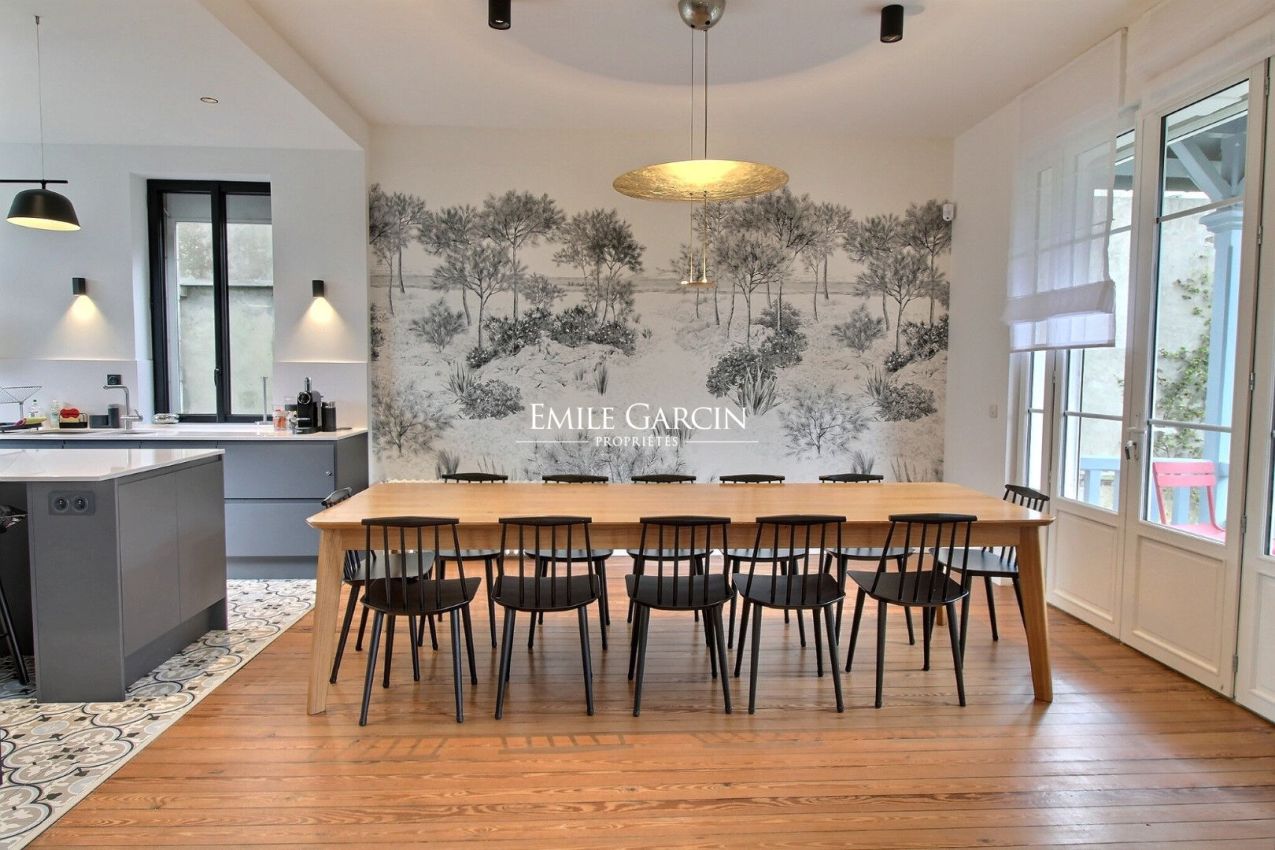En Normandie, à Deauville, à 5 minutes du centre ville et à 500 mètres de la mer, Emile Garcin vous propose à la location saisonnière une très jolie propriété rénovée avec goût d'environ 240 m². Elle se compose d'un salon télévision, d'une cuisine aménagée et équipée ouverte sur la salle à manger avec un accès au jardin ainsi qu'un toilette invités.