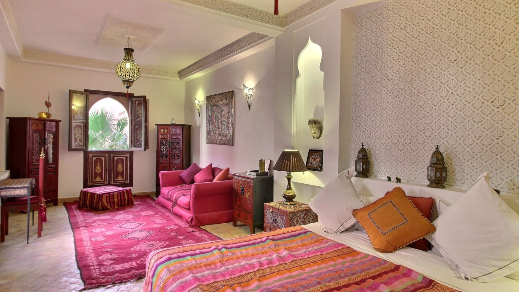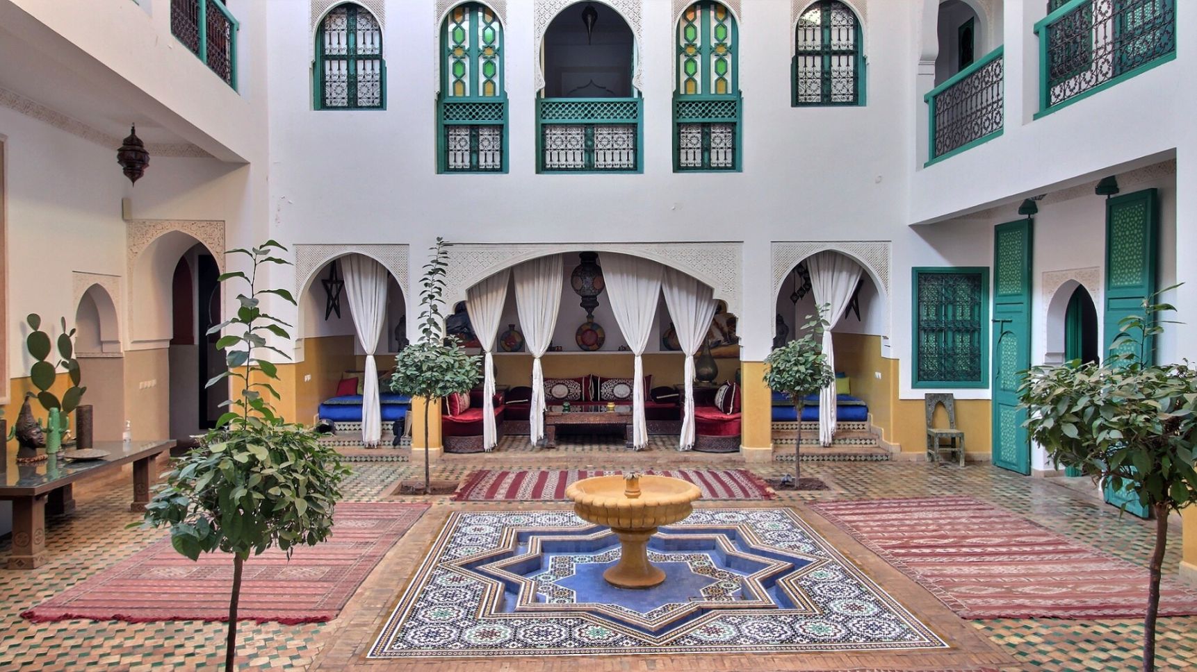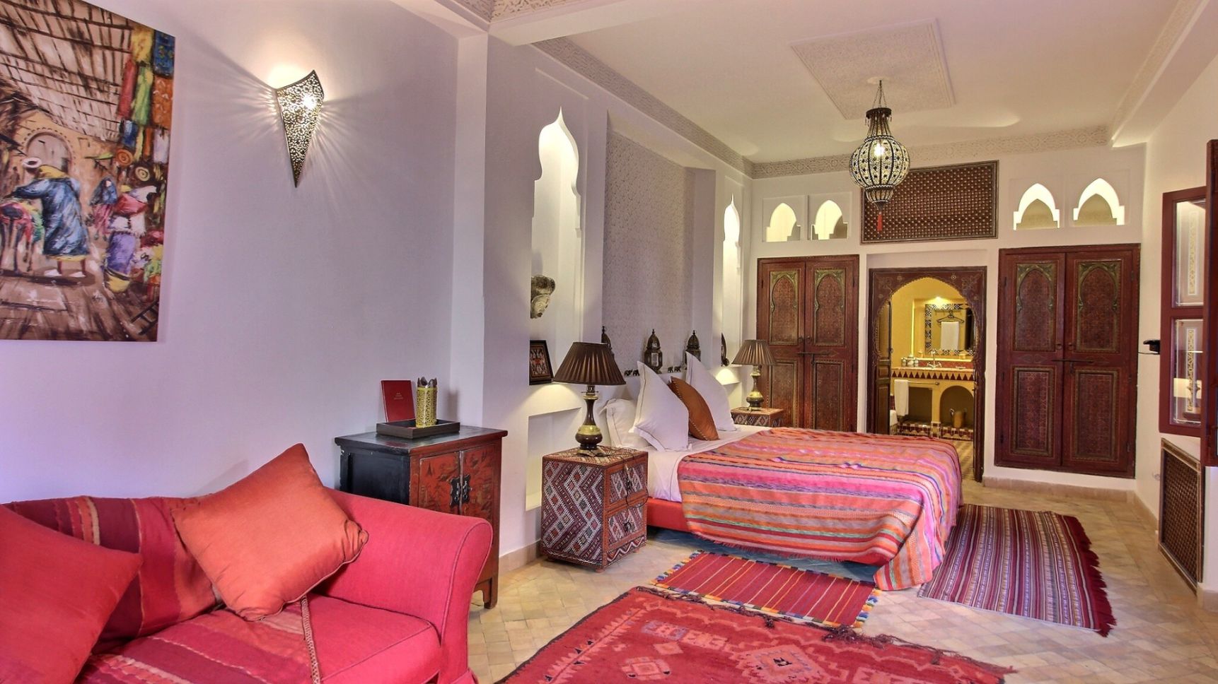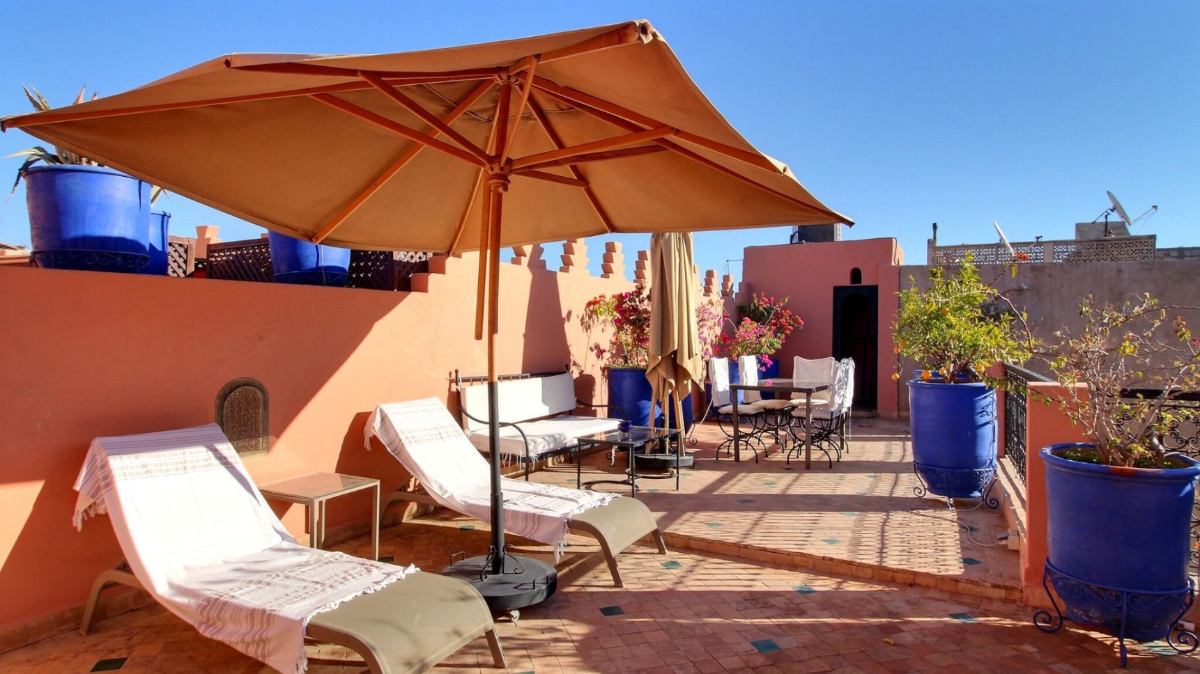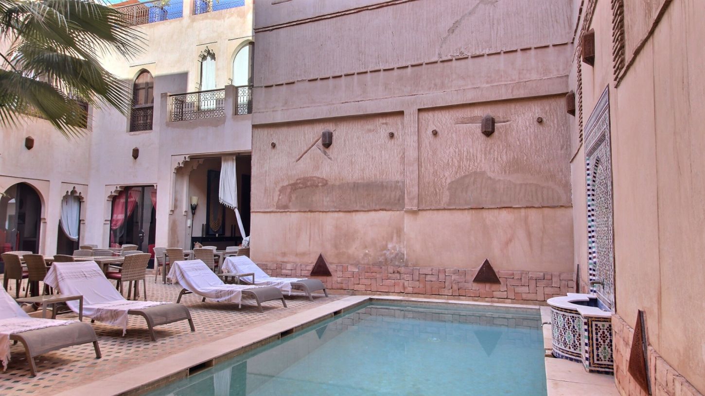 Joli Riad de 650 m², de 8 chambres à louer dans la médina de Marrakech proche Palais El Badi. Ce Riad à l'architecture orientale, propose tout le confort requis pour un séjour en pleine immersion dans la ville rouge. Il dispose de plusieurs salons conviviaux, salon cheminée, salle de jeux, espaces détente. Piscine, sale de massage et hammam. Toit terrasse avec solarium. Idéal pour un séjour en famille ou entre amis.