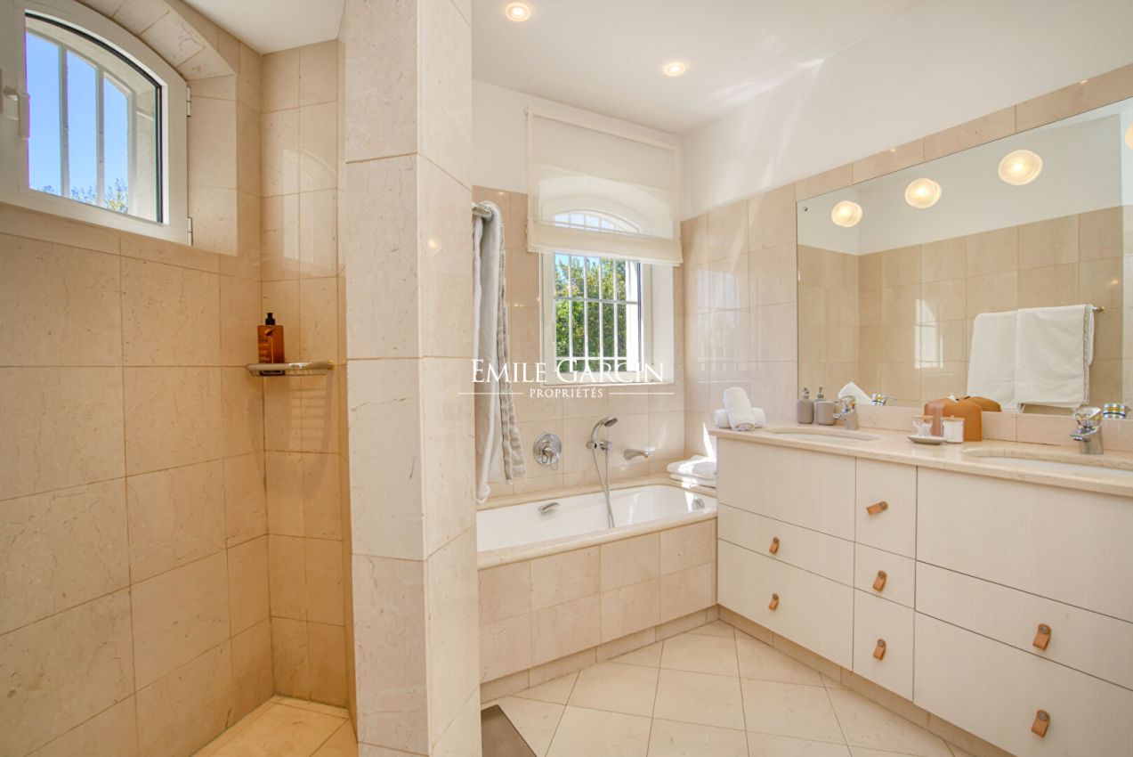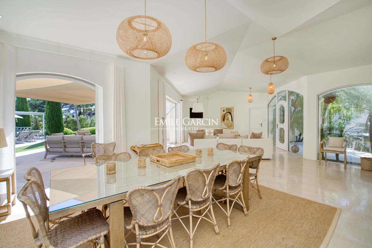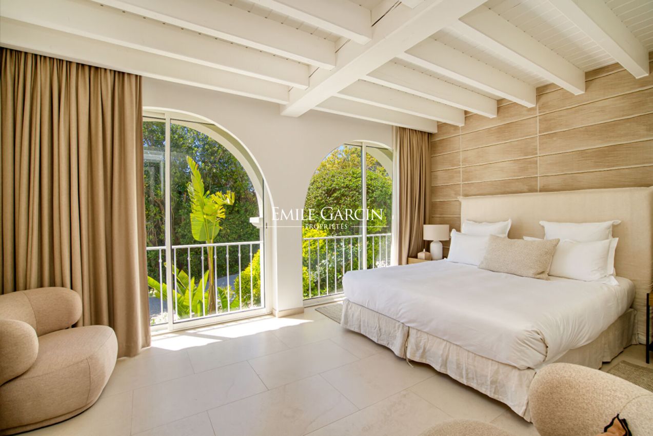 A l'abris des regards, propriété de 300m2 disposant de 6 chambres, 6 salles de bains, sise sur un terrain de 2 100m2 bénéficiant d'une vue mer. La jardin vous offre une piscine sécurisée et chauffée. Idéal pour profiter en toute intimité de vacances en famille ou entre amis. Numéro d'enregistrement : 83101 000384 CP.