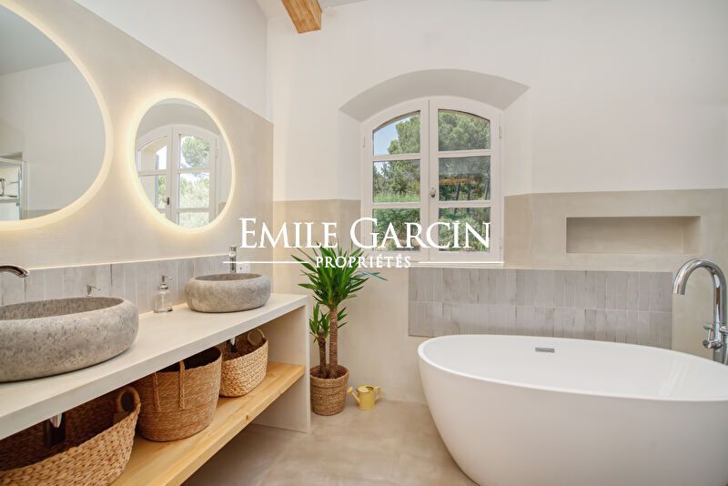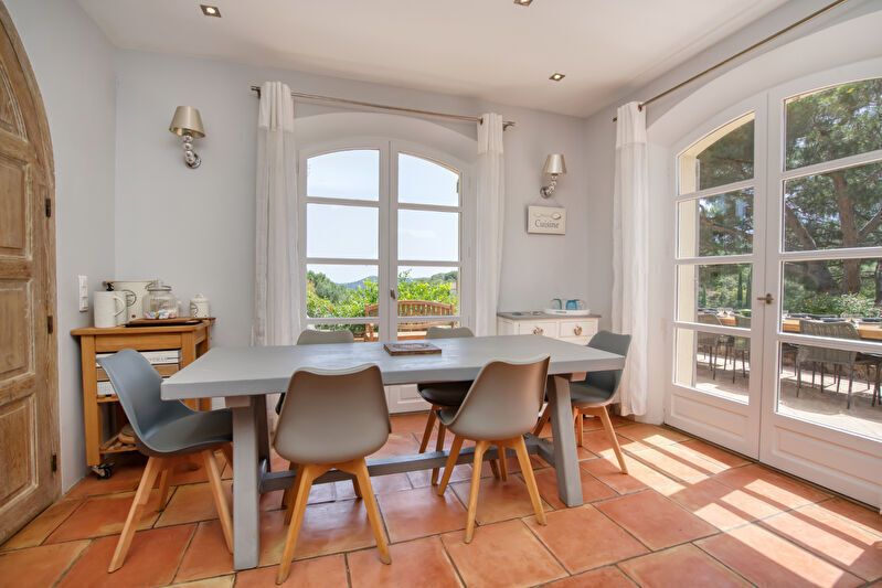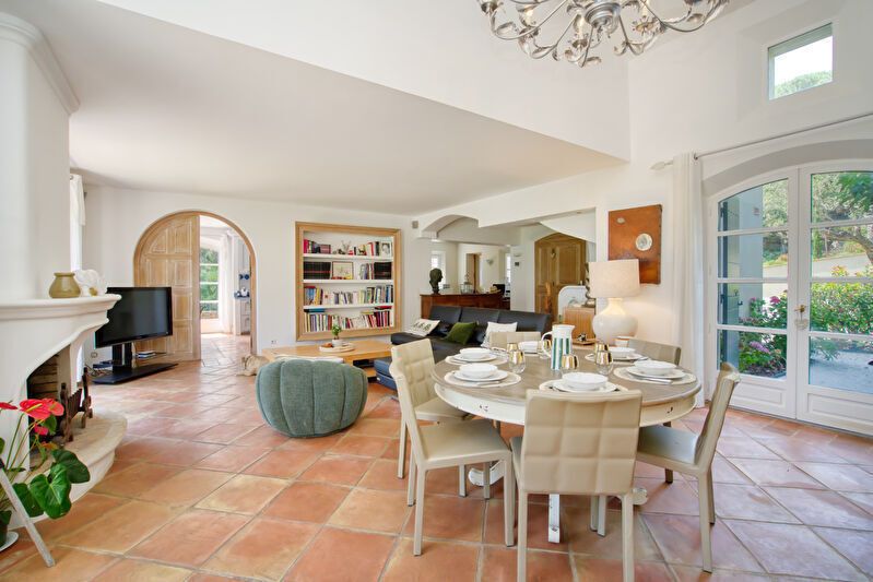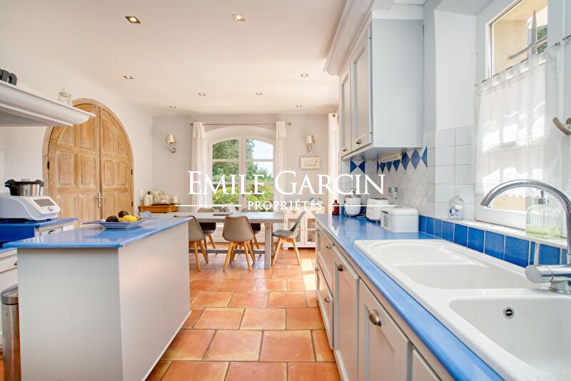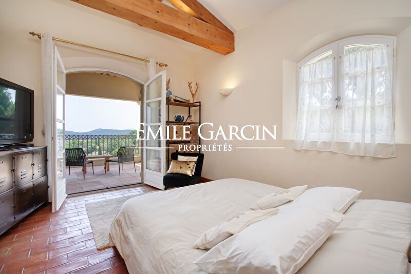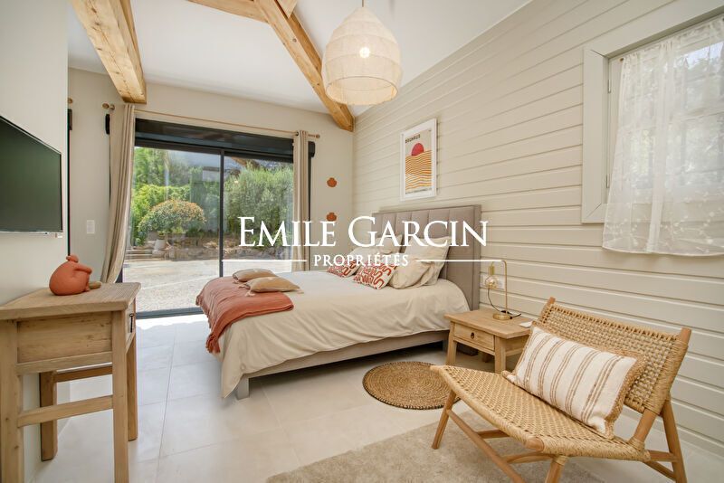 Idéalement située au pied du pittoresque village de Ramatuelle, cette propriété de 350 m² offre un cadre paisible et authentique, au coeur de la nature provençale. Baignée de lumière, elle dispose de 5 chambres et 4 salles de bains, offrant confort et intimité pour des séjours en famille ou entre amis. Son jardin soigneusement aménagé accueille une piscine de 10x5 m, sécurisée par alarme, idéale pour se rafraîchir en toute sérénité sous le soleil méditerranéen. Un terrain de pétanque et des espaces extérieurs ombragés complètent ce bien. Numéro d'enregistrement : 83101000741BQ