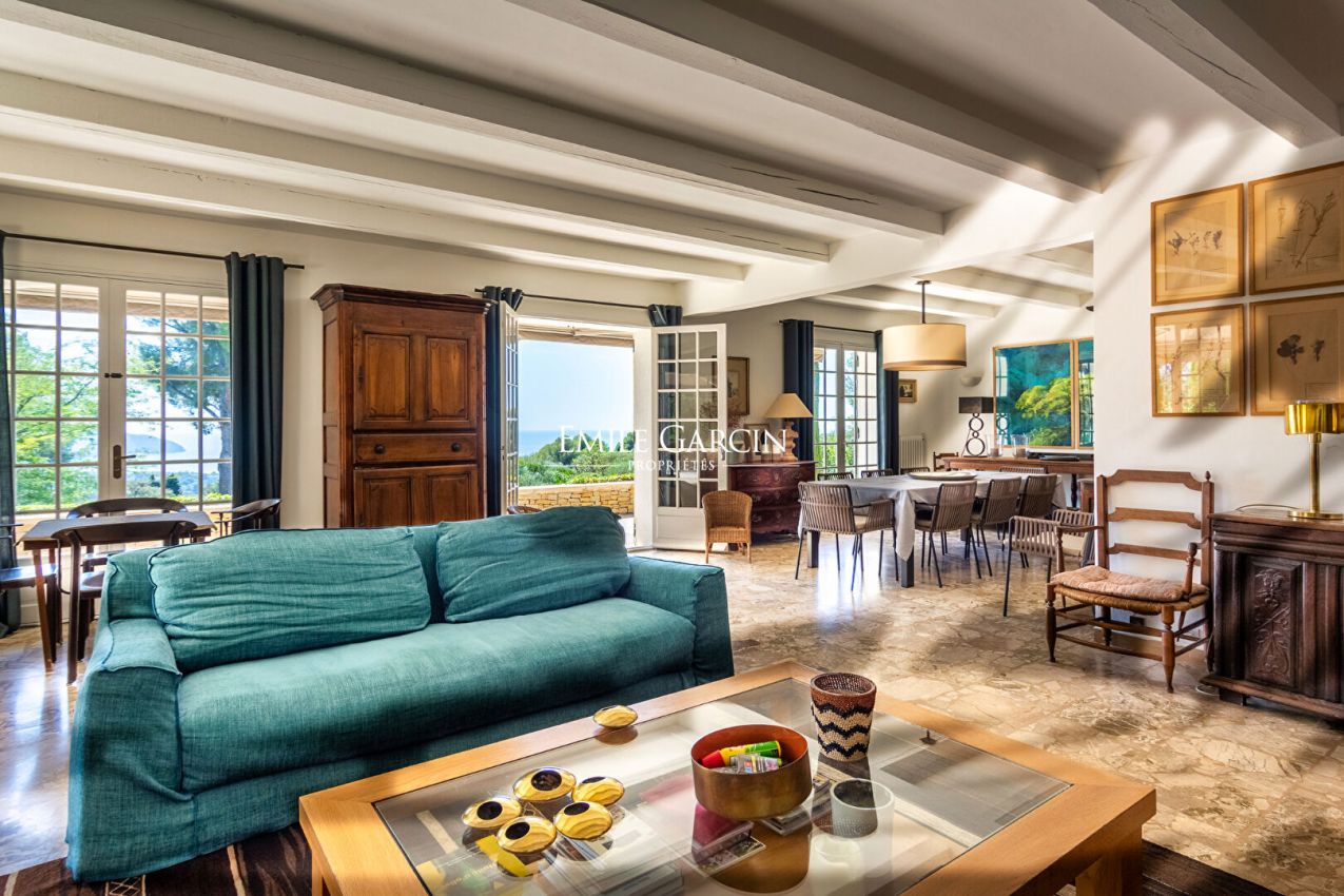 Nichée au coeur d'une pinède sur les hauteurs entre La Ciotat et Saint-Cyr-sur-Mer, la Villa Cytharis domine majestueusement la baie et offre un panorama exceptionnel sur la Méditerranée. Cette propriété familiale, parfaitement pensée pour accueillir des séjours en toute sérénité, séduit par son atmosphère préservée et ses vastes espaces extérieurs. Un très bel ensemble piscine, accompagné d'un pool house entièrement équipé, invite à la détente et à la convivialité. La villa comprend sept chambres doubles climatisées, une chambre simple, ainsi que six salles de bains, permettant d'accueillir confortablement jusqu'à 15 personnes. Les équipements de loisirs sont à la hauteur du cadre : piscine chauffée, terrain de tennis, terrain de pétanque, pool house avec cuisine d'été et chambre froide. La présence de gardiens sur place assure un séjour facilité et en toute tranquillité.