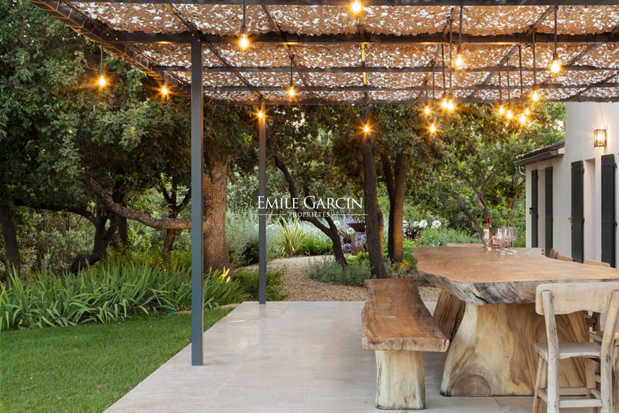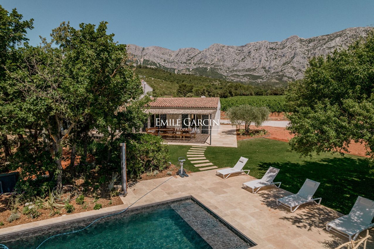 Nichée au coeur d'un vignoble familial de 70 hectares, la Villa des Gardis offre un cadre naturel exceptionnel face à la montagne Sainte-Victoire. Située à 5 minutes en voiture du village de Puyloubier et à 20 minutes d'Aix-en-Provence, la propriété accueille 6 personnes grâce à 3 chambres et 2 salles de bain, avec 2 chambres supplémentaires en option pour porter la capacité à 10 personnes. Piscine chauffée, sauna privé, jacuzzi privé, et terrain de pétanque complètent ce lieu idéal pour un séjour au calme, entre vignes et nature. Possibilité de louer en option un autre logement sur le domaine équipé de 2 master suites avec Jacuzzi.