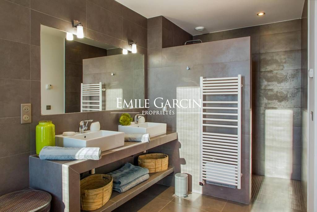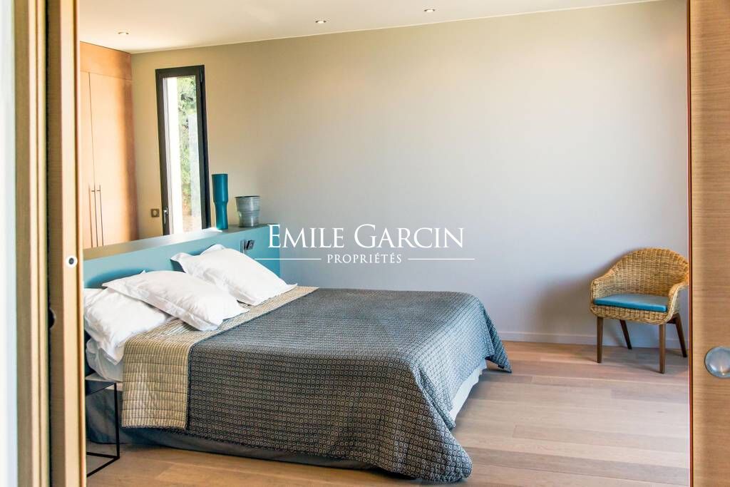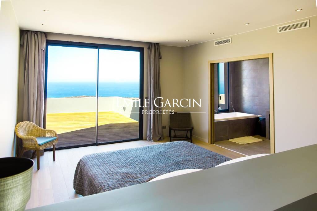 Les cinq chambres de la maison, toutes spacieuses et élégantes, disposent de leur propre salle de bains, de grands dressings et s'ouvrent de plain-pied sur l'extérieur. Chaque chambre est pensée comme un cocon de tranquillité, avec des lits orientés face à la mer pour profiter au maximum du cadre naturel. L'agencement privilégie confort et indépendance, idéal pour les familles ou les groupes d'amis.